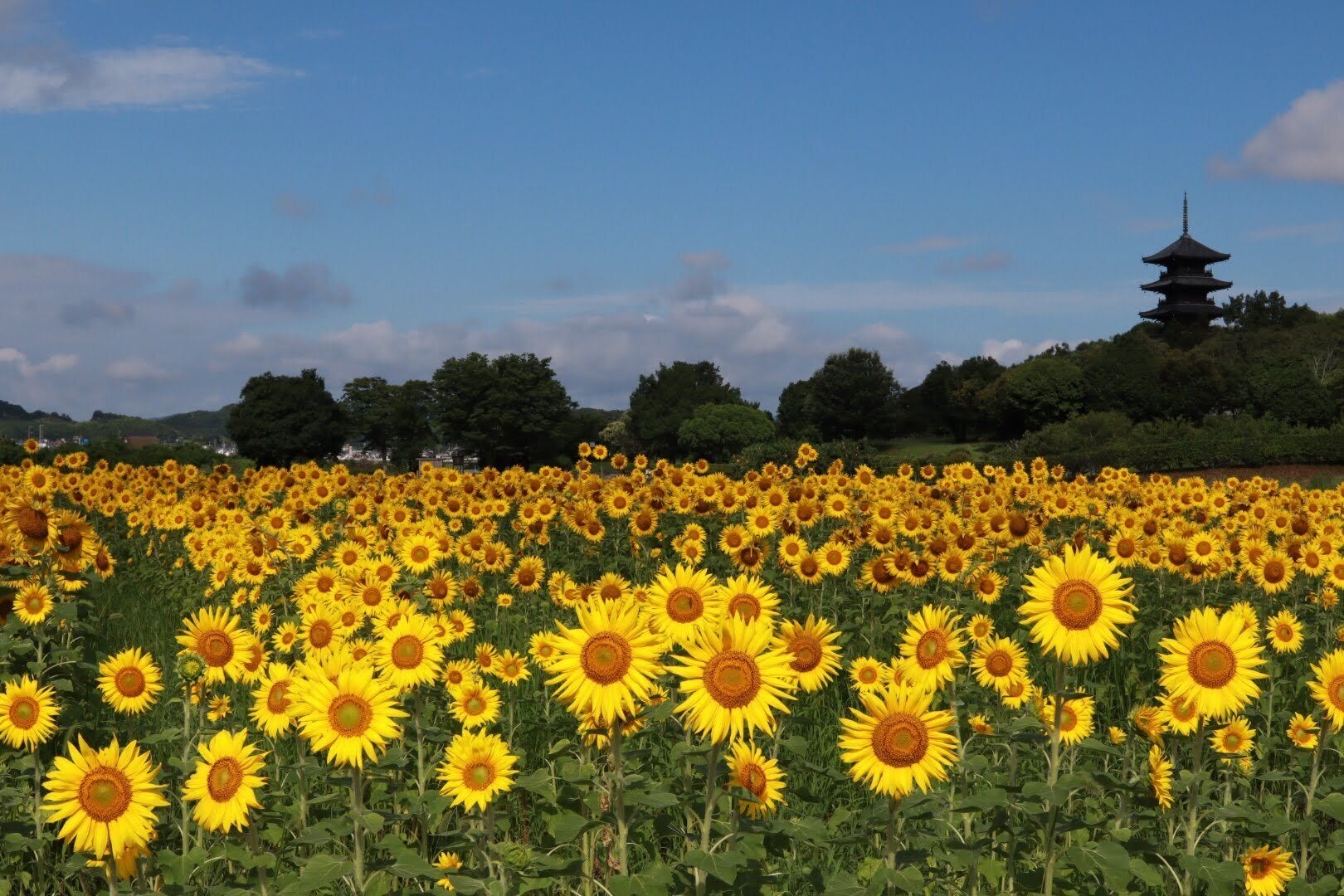 そしてみんなの写真スポット、備中国分寺です。ここには五重塔があり、すごく広い芝生のスペースがあるので、小学校の遠足からお祭り、前撮りにも使われることが多いです。