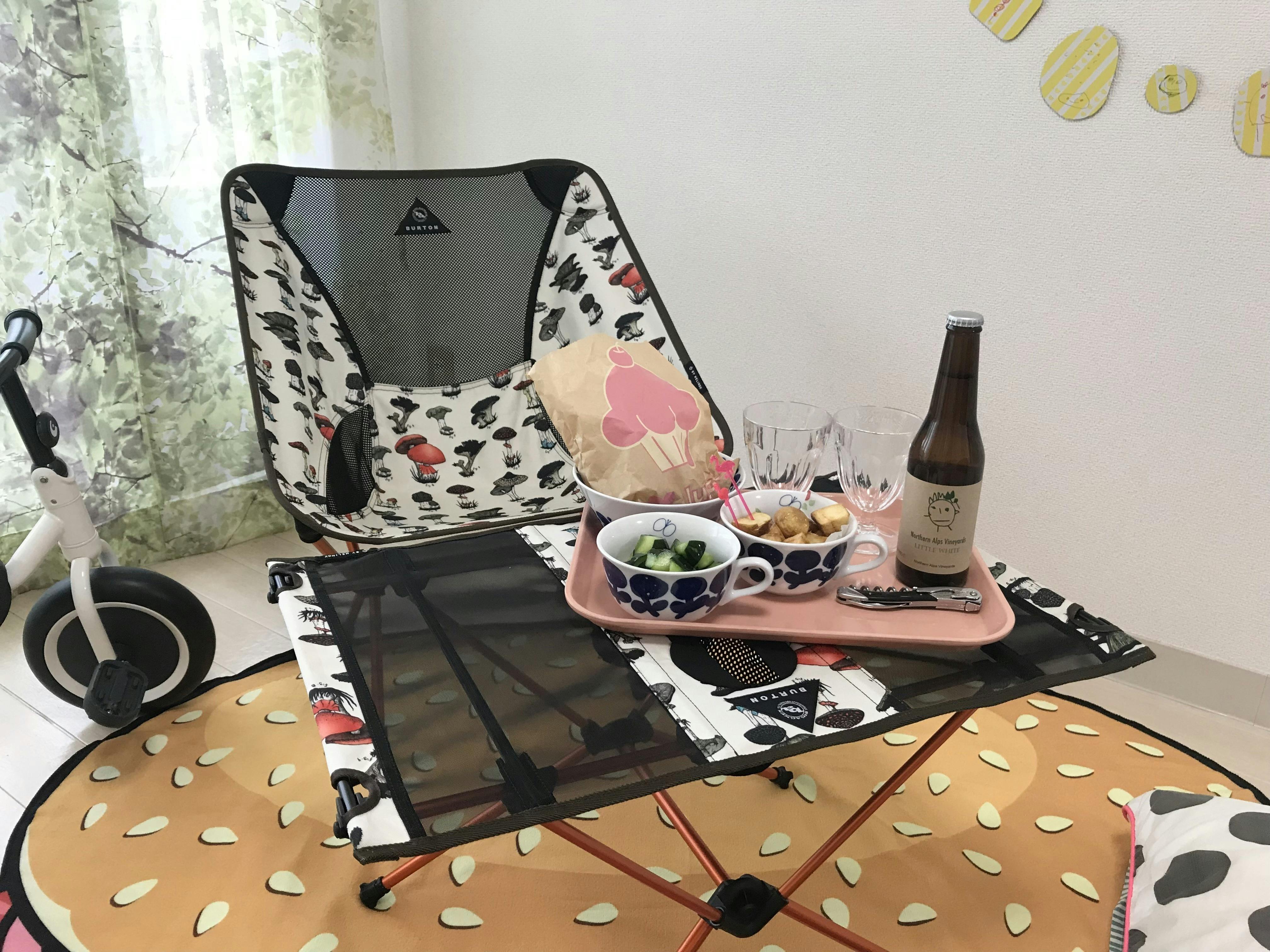 お休みの日やお天気のよくない日でもお部屋にキャンプテーブルとチェアを広げたら...