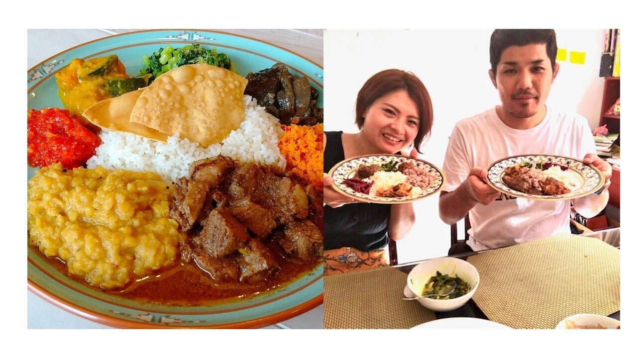店主・カレーの紹介:甘味、苦味、酸味、塩味、辛味、渋味の六味を基調とした重層的な味わいと香り、それらを混ぜて食べる。お腹いっぱいに食べても食後感は軽く毎日でも食べたくなる、そんな至極のスリランカカリーを目指し日々奮闘中のヒラノ夫妻。止む無き探求心で進化を続けるスリランカカリーを全国の皆様へ。