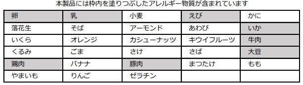原材料名:米(パキスタン産バスマティライス)、白身魚、玉ねぎ、マスタードオイル、牛乳、塩、青唐辛子、にんにく、しょうが、ピュアギー、香辛料、ケウラウォーター、ローズウォーター、サフラン