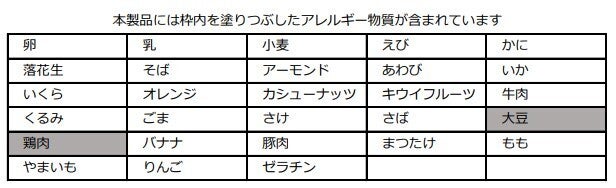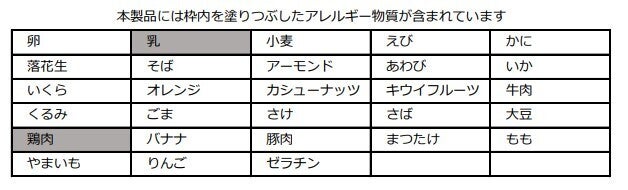 原材料名:米(国産ひのひかり)チキンレッグ、濃縮鶏スープ、トマトピューレ、煮干し、マンゴージュース、米白絞油、フライドオニオン、おろしにんにく、おろししょうが、しょうゆ、トマト缶、粗糖、ヨーグルト、生にんにく、ラー油、カラメル色素、タマリンドペースト、竹炭