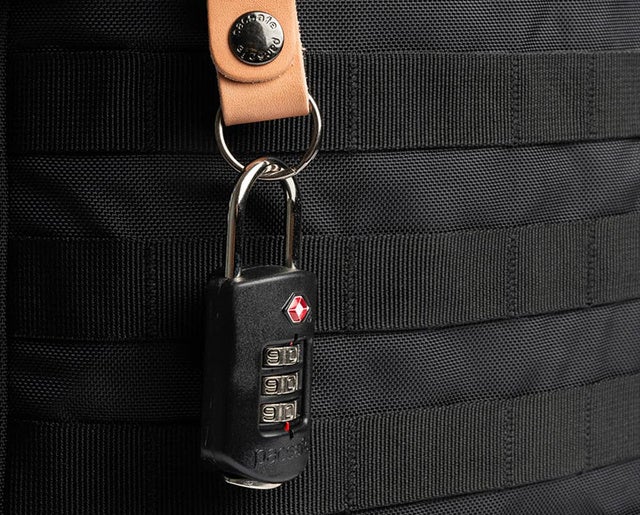 バックパックの口をしっかりとロックする3桁のTSA承認済み南京錠をお付けしてお届けします!