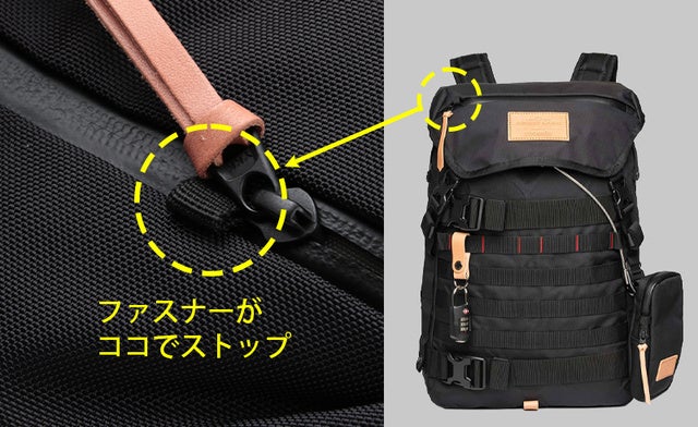 そのため、電車内などで背後から容易にジッパーを開けられるのを防ぎます。