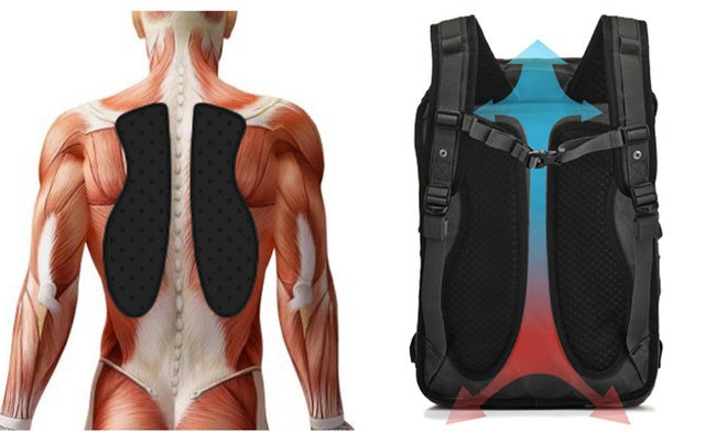 人間の体の構造に基づいて作られたバックパックですので、肩への負担を軽減され、背負い心地が良く重さを感じにくいメリットもあります。
