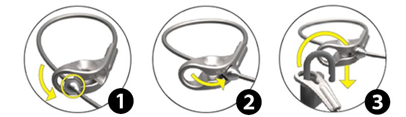 1. ケーブルを引っ張り、シルバーのビーズをロック装置から通過させます