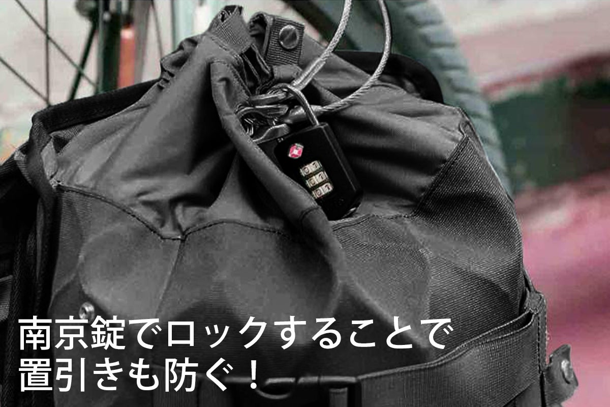 こんな時もTheRiderDaypackがあれば、テントの骨組みなど動かない場所にバックパックを固定し、南京錠をしっかりとかけておくと防犯対策もバッチリ!