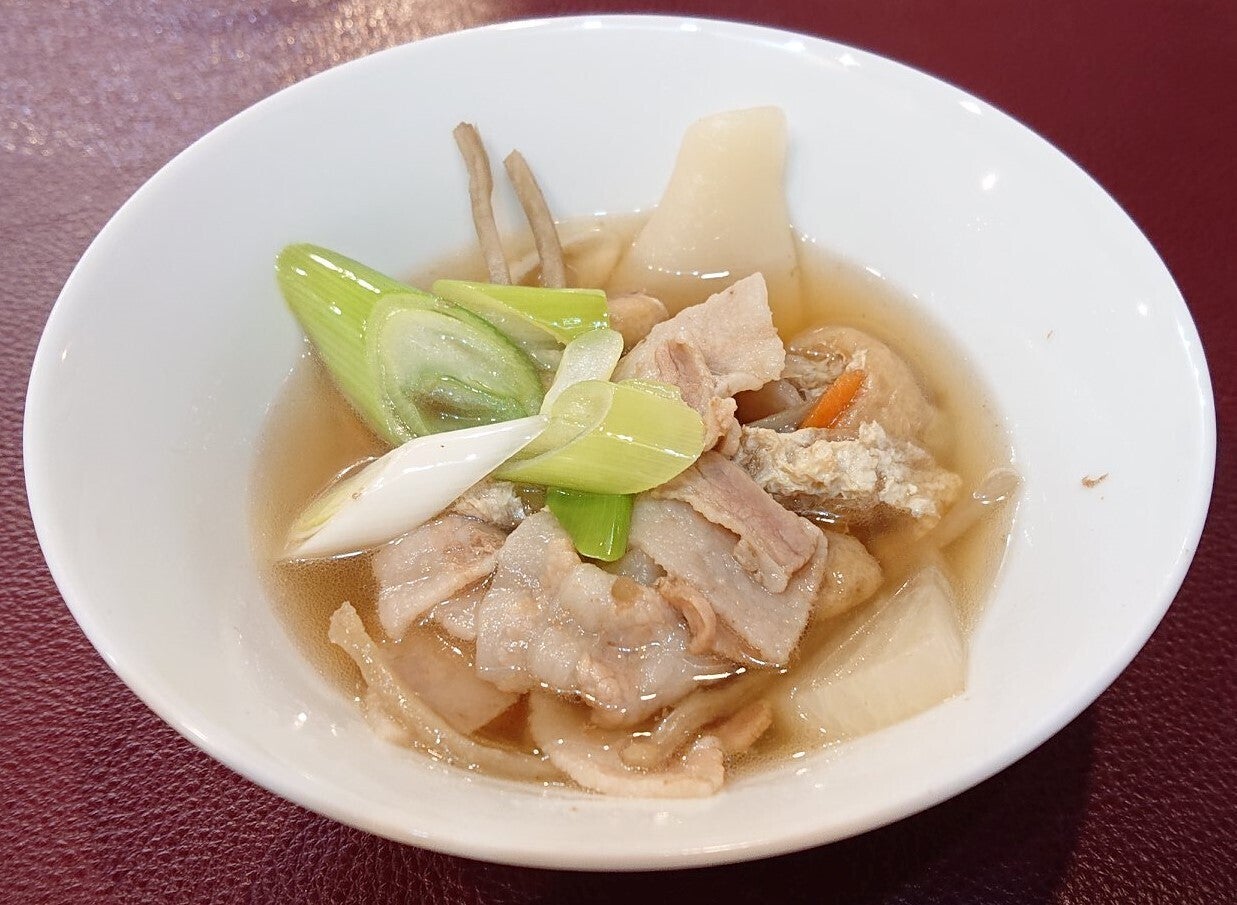 最初はうどんの端材で作っていた”はっと”でしたが、現在は薄く伸ばしたうどん生地を刃物を使わずに全て手ちぎりしています。この手ちぎりしている事で断面がギザギザになり、味が染みやすくなるのです。そして小麦粉は煮ることでふっくらして、そこに汁の味が入り『しみしみ!もっちもち!』の食感となります。