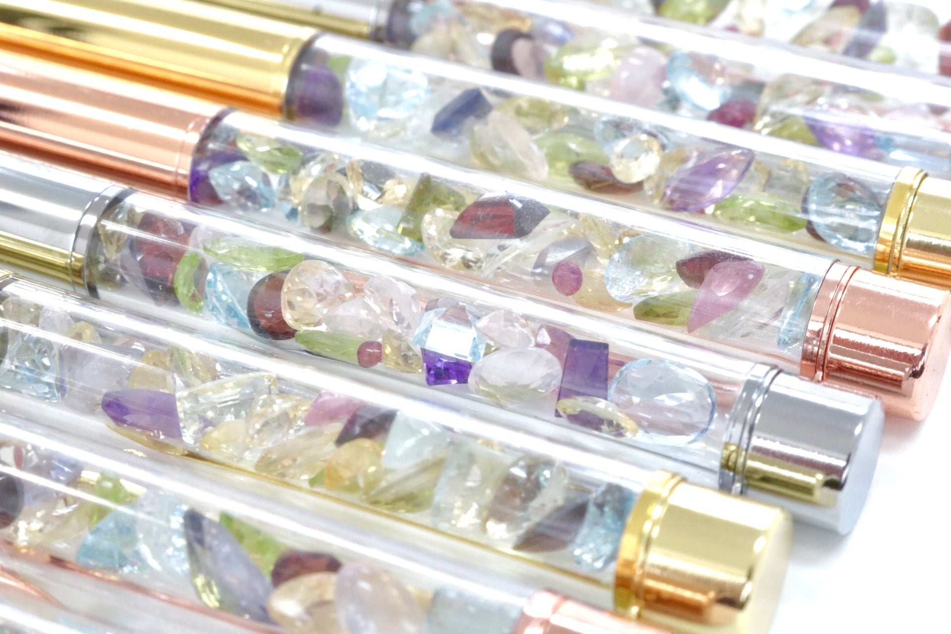 ※当社でボールペンに宝石を一石一石丁寧に入れています。あえてボールペンの上部と下部を接着していません。お好きなタイミングで宝石を出せる様にしています。