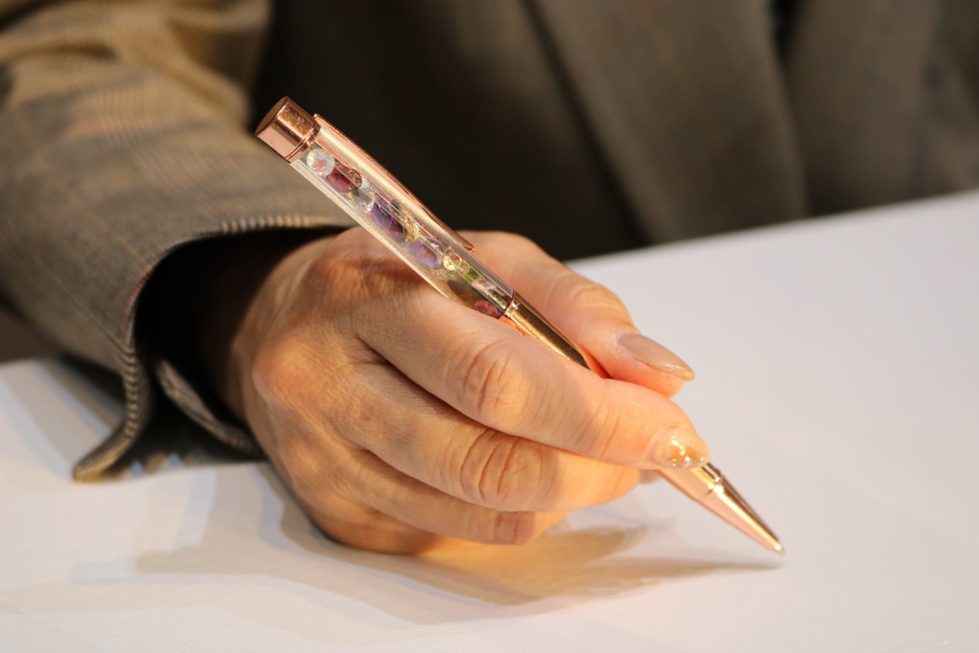 ボールペンの上部が透けていますので、いつでも宝石を眺める事が可能です。