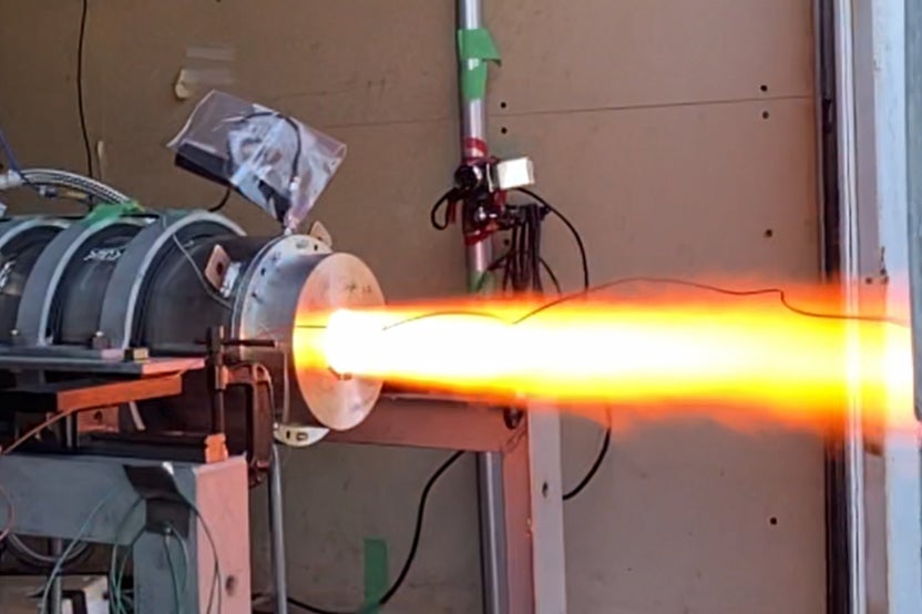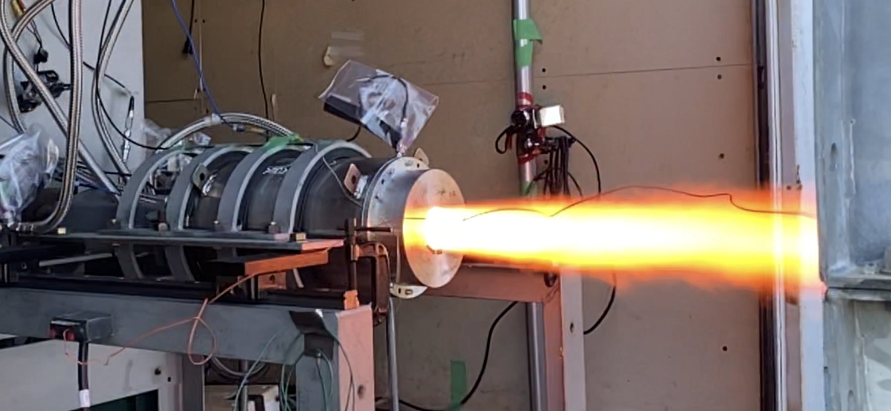 私たちはまずエンジンの開発に取り組んでいます。皆で開発に取り組んだ結果、2021年4月に第1回燃焼試験にたどり着くことができました。下の写真は初めてエンジンに火が入った瞬間です!