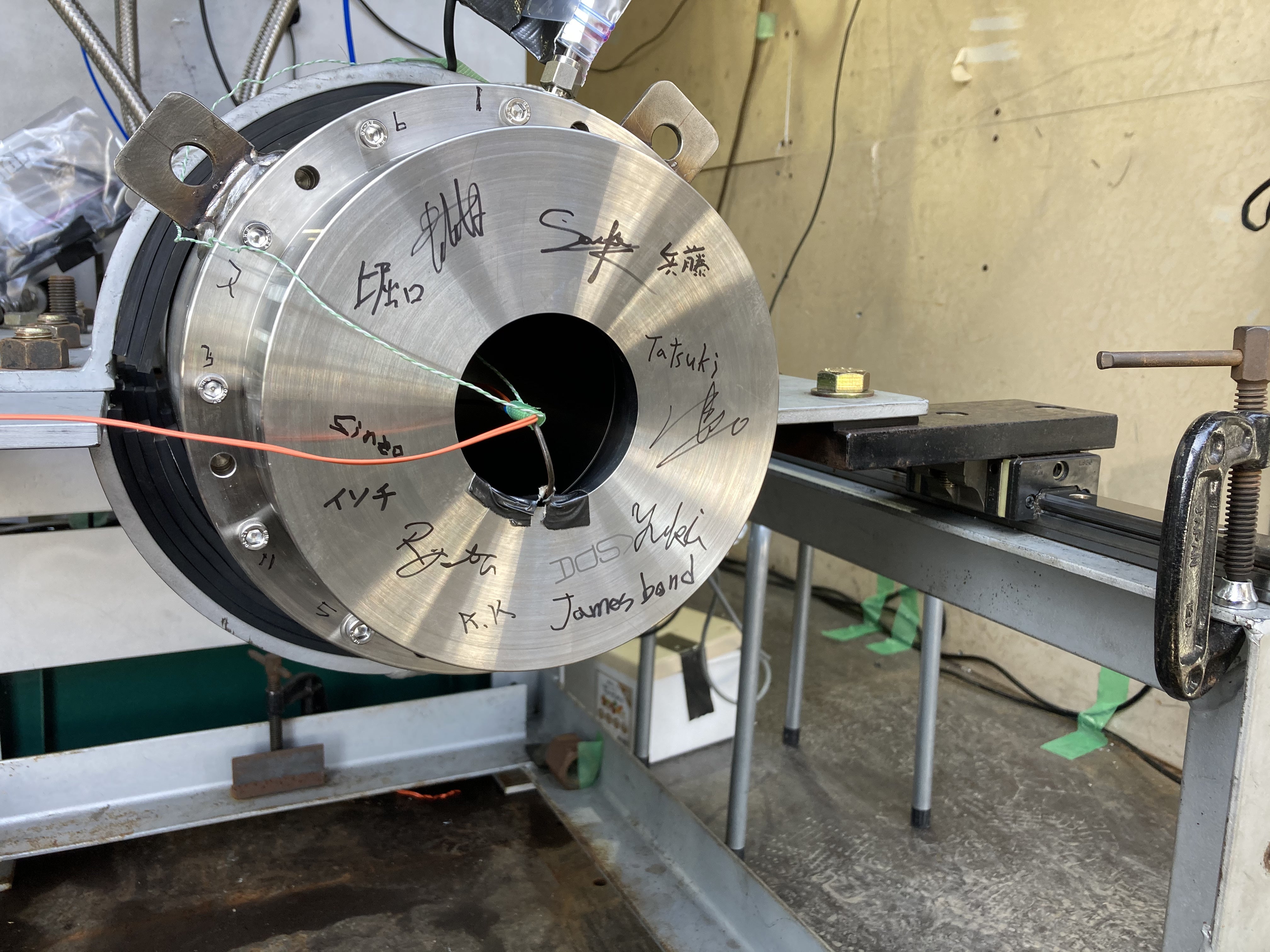 メンバー全員が初の経験ということもあり、なかなか思うようにはいかず幾度となくトラブルにも遭遇しました。しかし、専門家の方々のアドバイスや、1週間にわたる実験合宿を得て、何とか燃焼試験までたどり着くことができました。