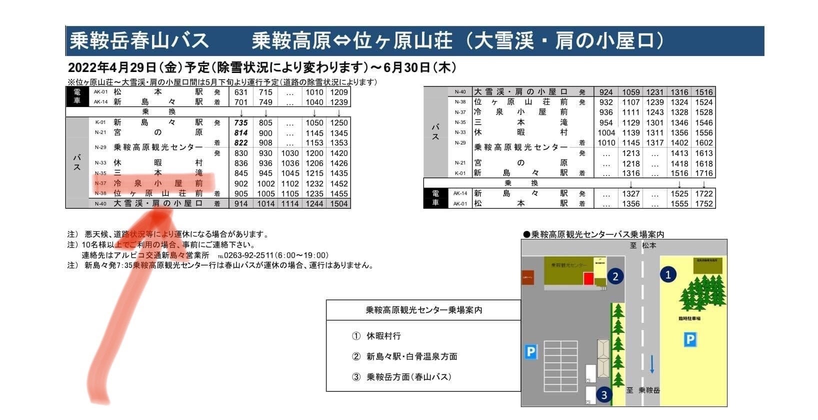 クラウドファンディングとは関係ありませんが、2022年の春山バス時刻表が出まして、なんと冷泉小屋前のバス停を復活してもらうことが出来ました。通常期はバス停があるんですけど、春山バスの期間は飛ばされてたんですよね。営業もしてないので当たり前なんですが。今年は工事関係の人も上がってくるし、視察の人も来るかと思いまして、昨年末からお願いして実現する運びとなりました。アルピコ交通さん、ありがとうございます!小さな話ですけど、結構うれしいもんですね。しかし、これはオープンに向けて確実に時計が動いている証でもあり、のんびり派の私でも焦燥感で少しお尻のあたりがムズムズしてきましたww ということで、クラファンにてこんな私たちを応援していただけると踊って喜びますので、何卒よろしくお願いいたします!