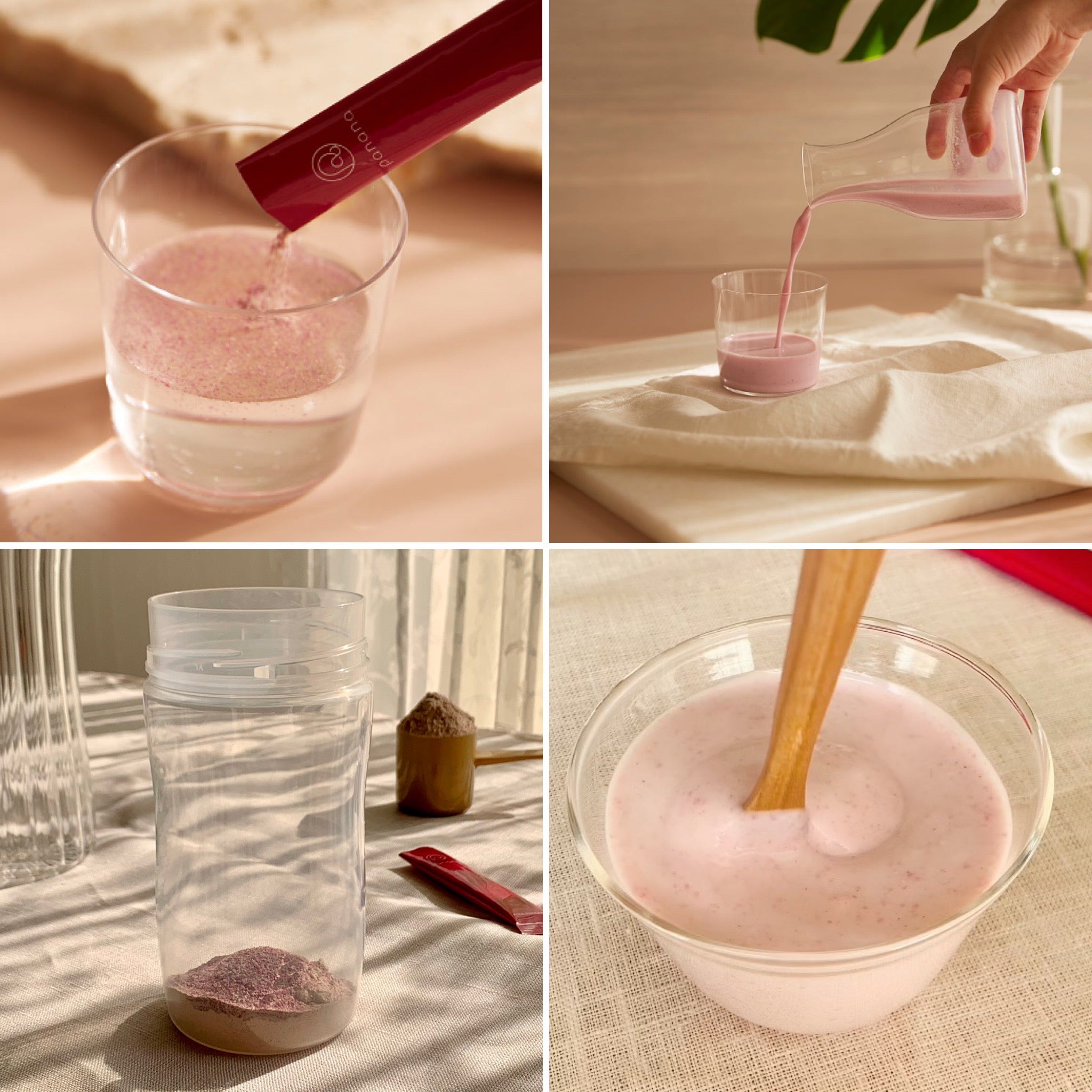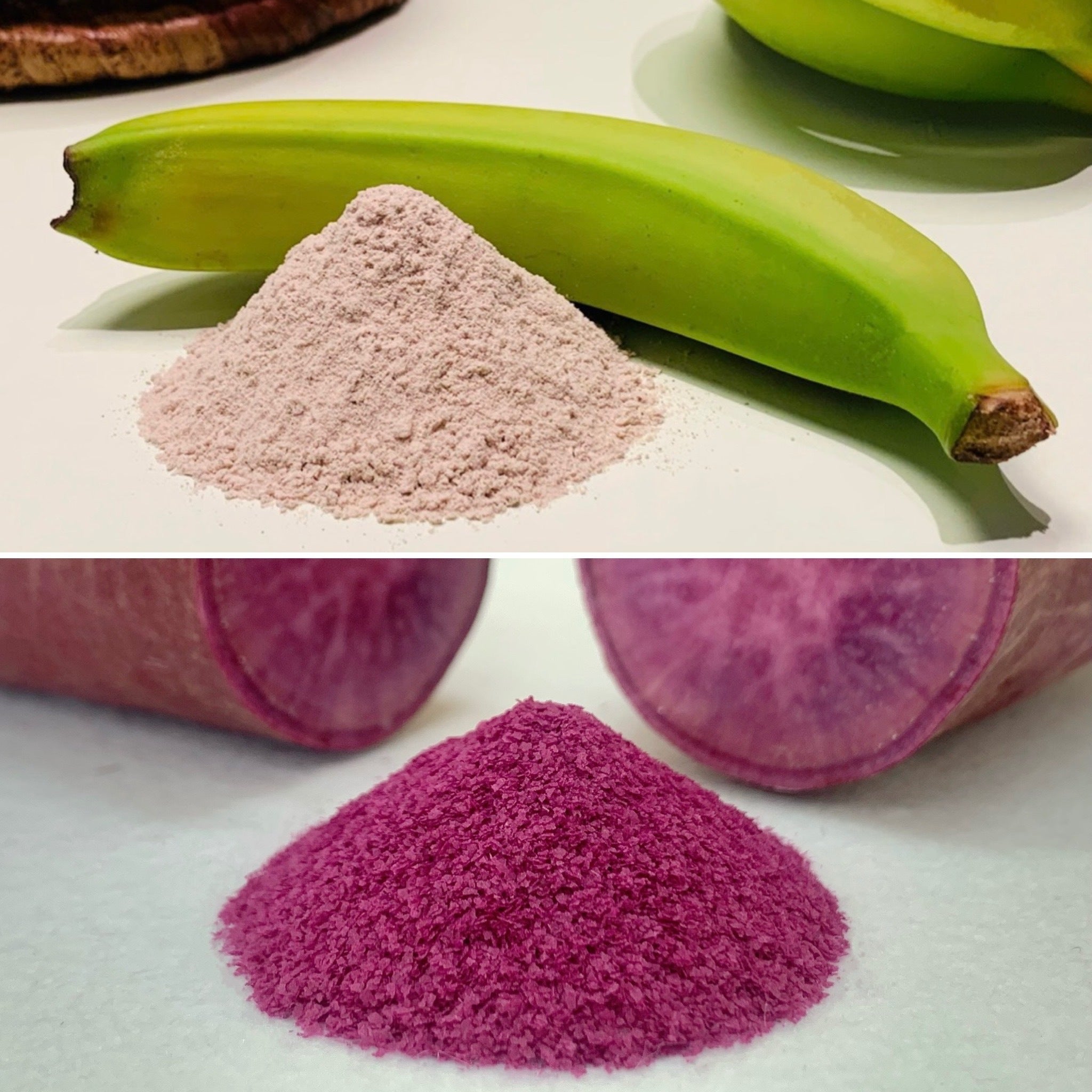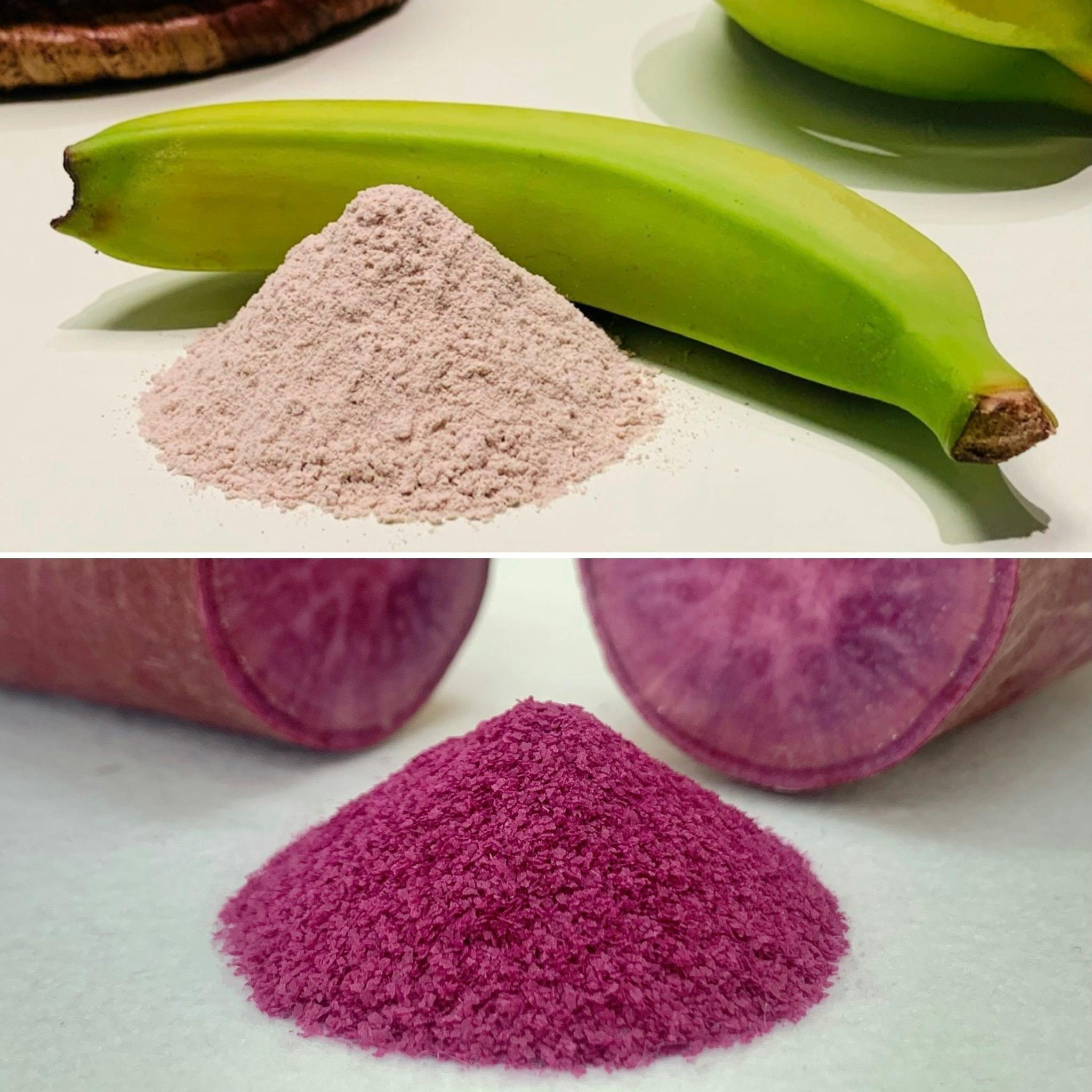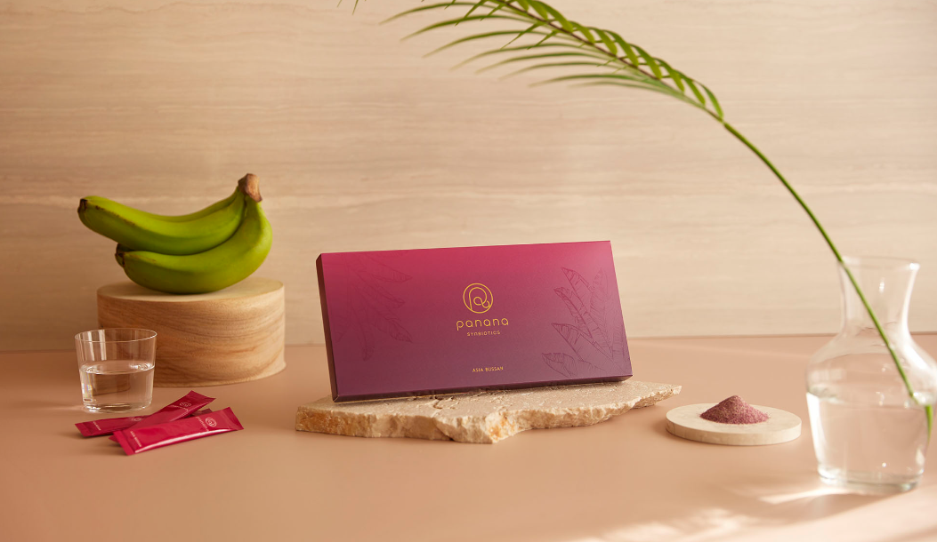 青いバナナには腸活に適した成分はあっても甘さがありません。美味しく取り入れやすいように紫色のサツマイモで甘さを出しています。内容物が紅サツマイモのアントシアニンパープル(紫色)なことから『panana』という名前になりました。