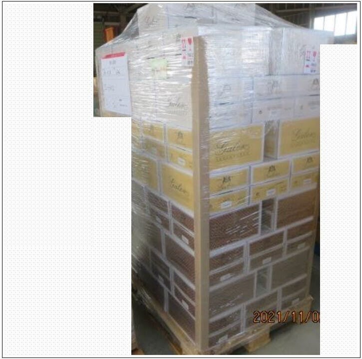 ↑ 現在倉庫に保管されている、クレマンが載ったパレットの写真です。(我が社とは関係ない他の荷物も写っていたので周りは隠しています。)