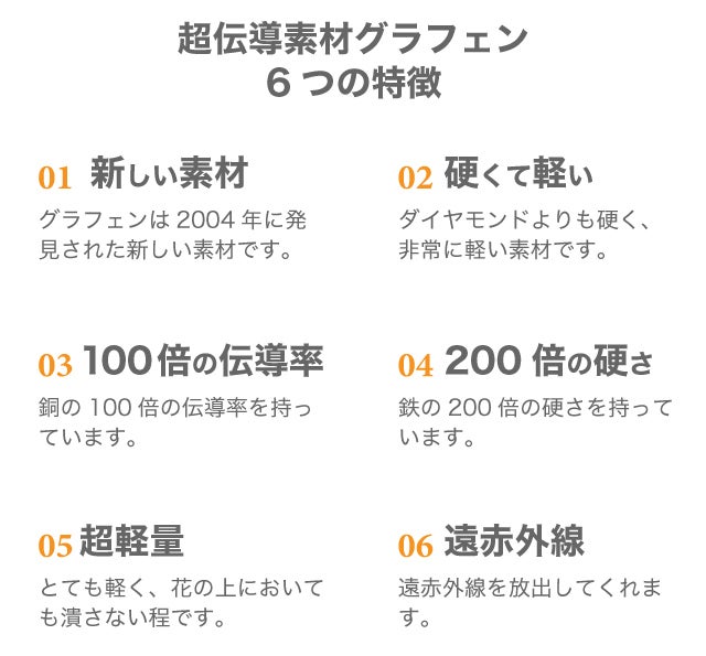 奇跡の元素、グラフェンが発する自然の遠赤外線。質の高いリラックスタイムを感じることができます。