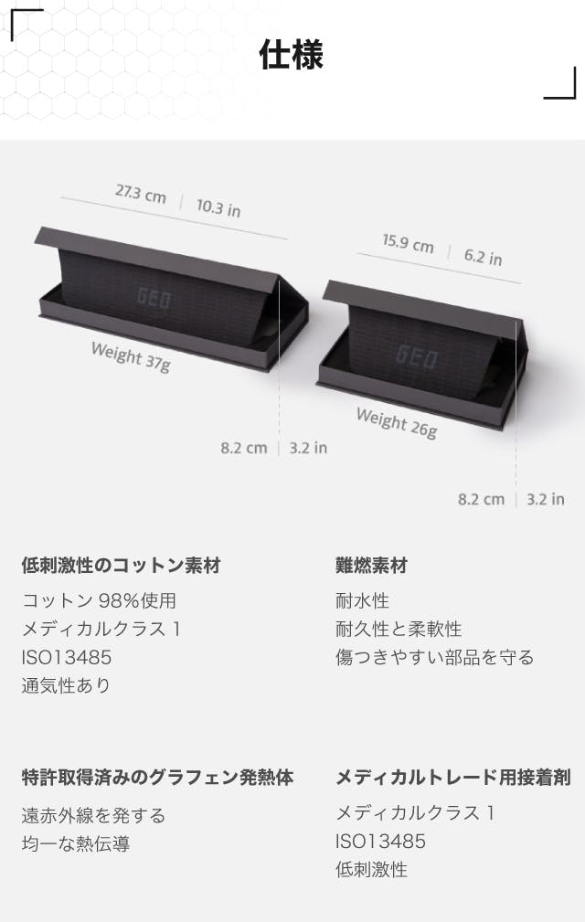 個人用の赤外線サウナに数万円をかけたり、個人のスパやクリニックで遠赤外線サウナを体験するためにお金をかける人もいます。一方、ヒートパットGEOは、超軽量で便利で実用的なので、誰でも利用できます。さらに、体のどこにでもぴったりとフィットし、どこでも使用することができます。