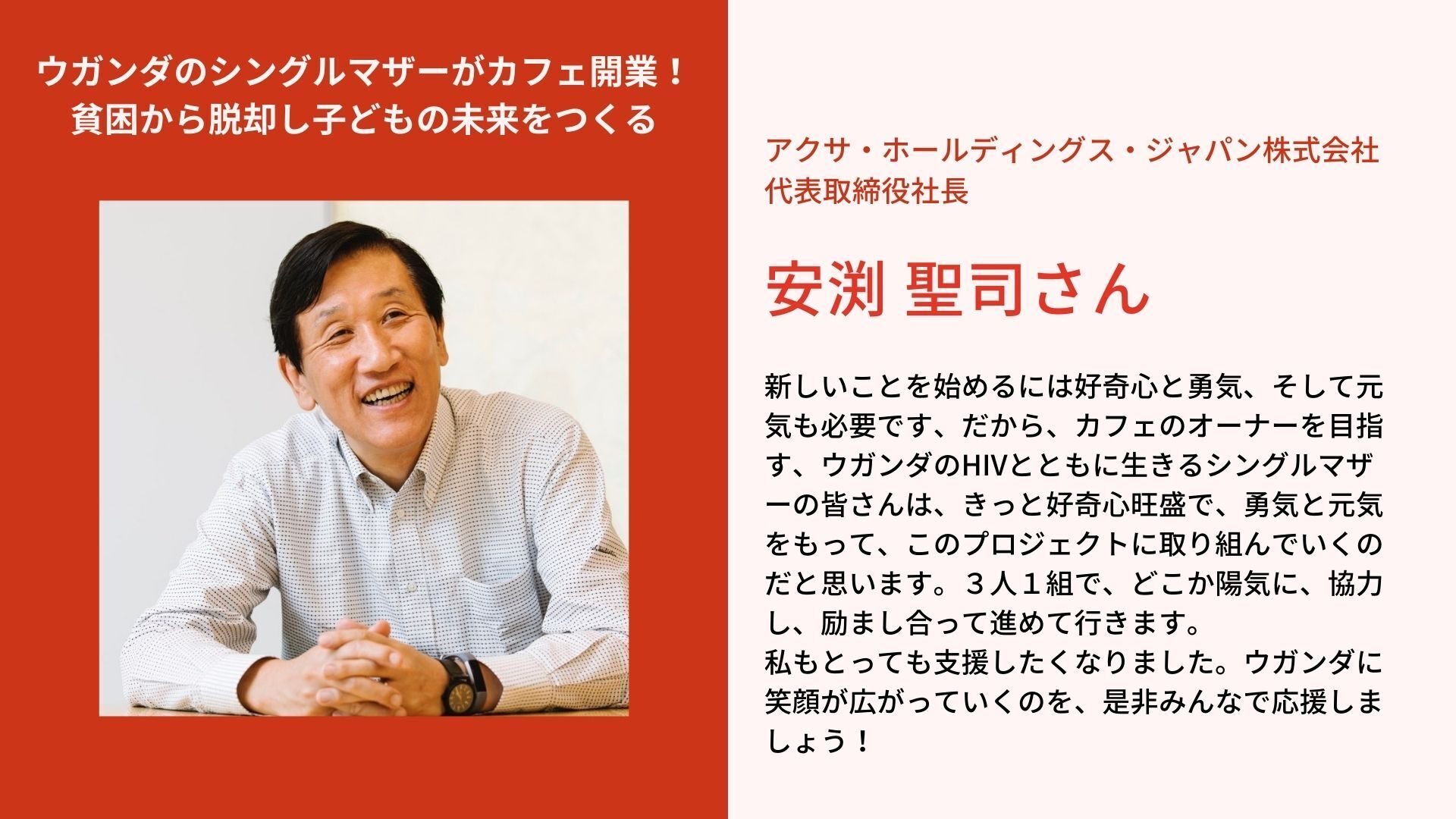 私もとっても支援したくなりました。ウガンダに笑顔が広がっていくのを、是非みんなで応援しましょう!