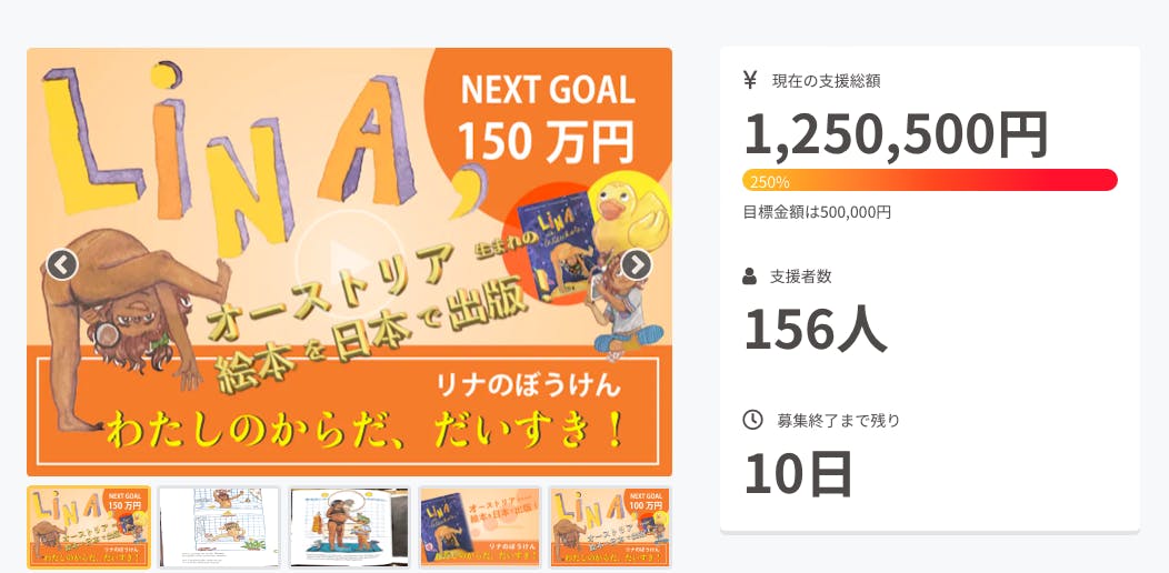156人のご支援いただきました皆さま感謝申し上げます!