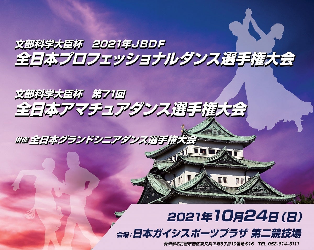このたび、公益財団法人日本ボールルームダンス連盟(JBDF)は、「文部科学大臣杯2021年JBDF全日本プロフェッショナルダンス選手権大会、並びに文部科学大臣杯第71回全日本アマチュアダンス選手権大会」を一般社団法人中部日本ボールルーム連盟主管のもと、10月24日(日)名古屋市の日本ガイシスポーツプラザ第2競技場で開催します。