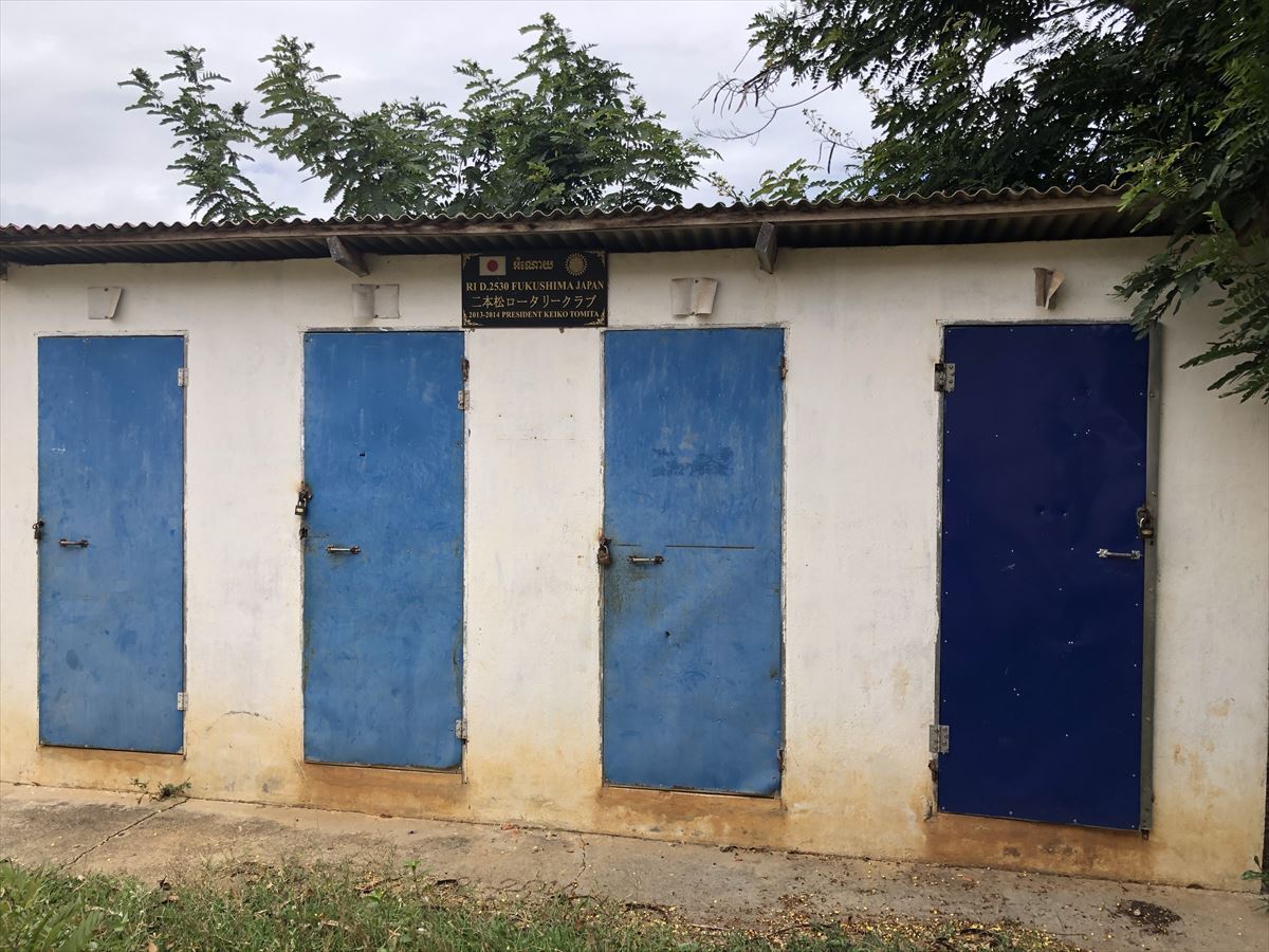 実は、右側の紺色のドアのトイレは、17名の教師用となっていまして、子どもたちが使えるトイレは実質3つです。