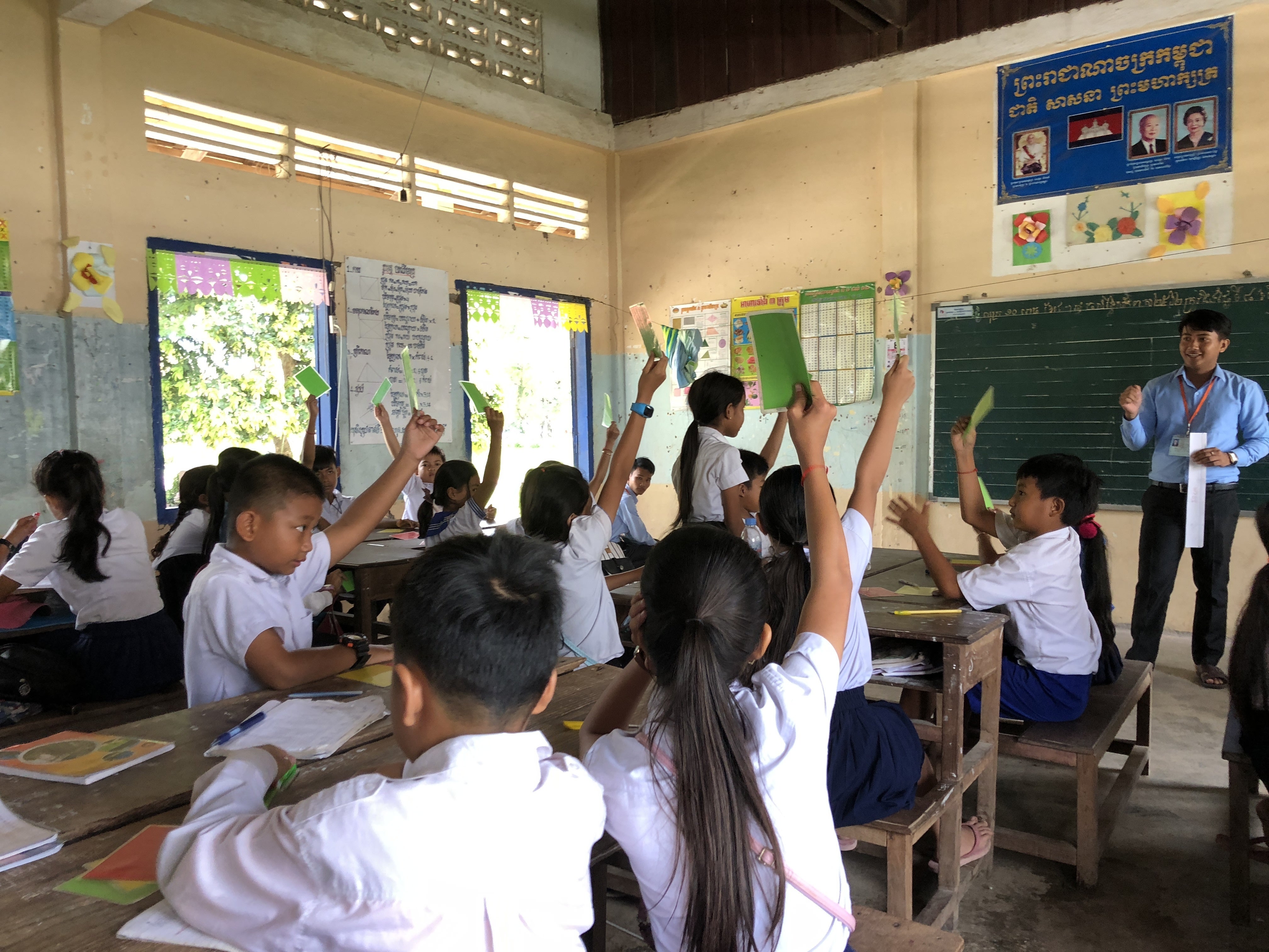 先生が問いかけると、子どもたちの手が挙がります。言語教育の充実が課題とされるカンボジアで、これほどまでに自らの意見が言えるのはすごいとしか言いようがありません。
