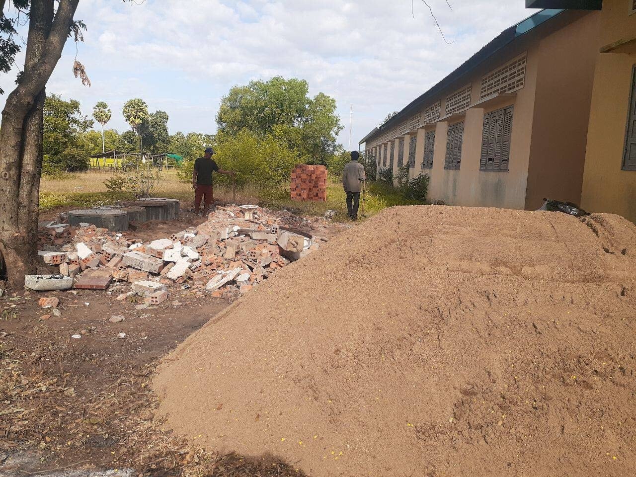 上の写真のように、古いトイレは完全に取り壊され、新築に必要な材料の搬入が始まりました。