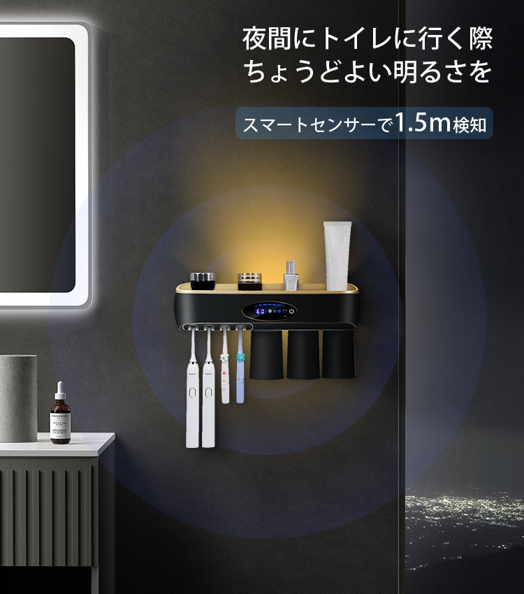 「CLEAN-UP」は歯ブラシが4本、マグネット式コップ3個に加えてトップカバーに物が収納できます。