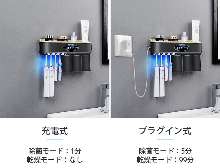 充電式は除菌モードが1分のみで乾燥モードが使えないため、乾燥モードを使いたい場合はモバイルバッテリーで給電してください。