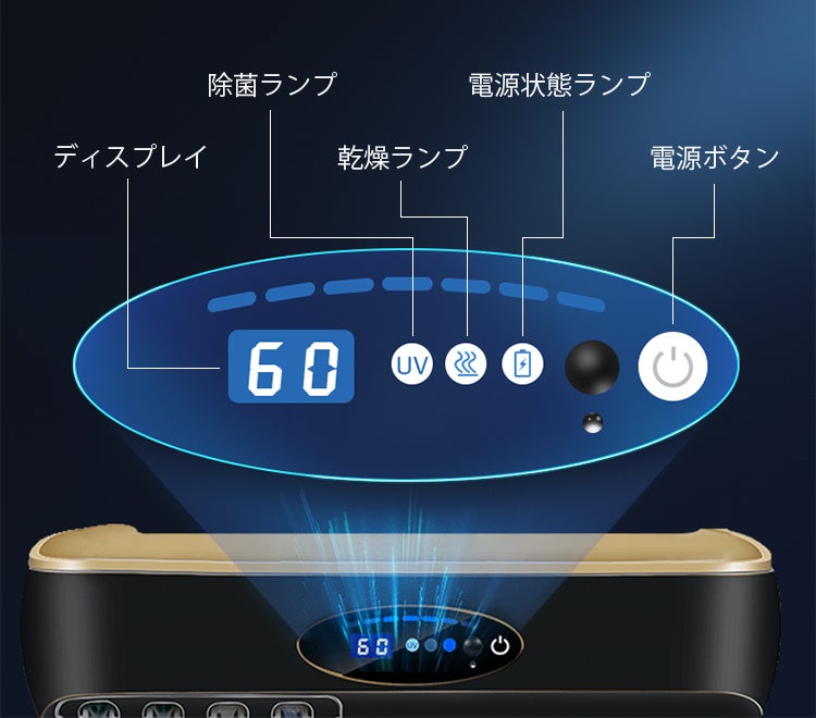 除菌時間と乾燥時間はディスプレイにカウントダウン表示されるため正確な時間がわかります。
