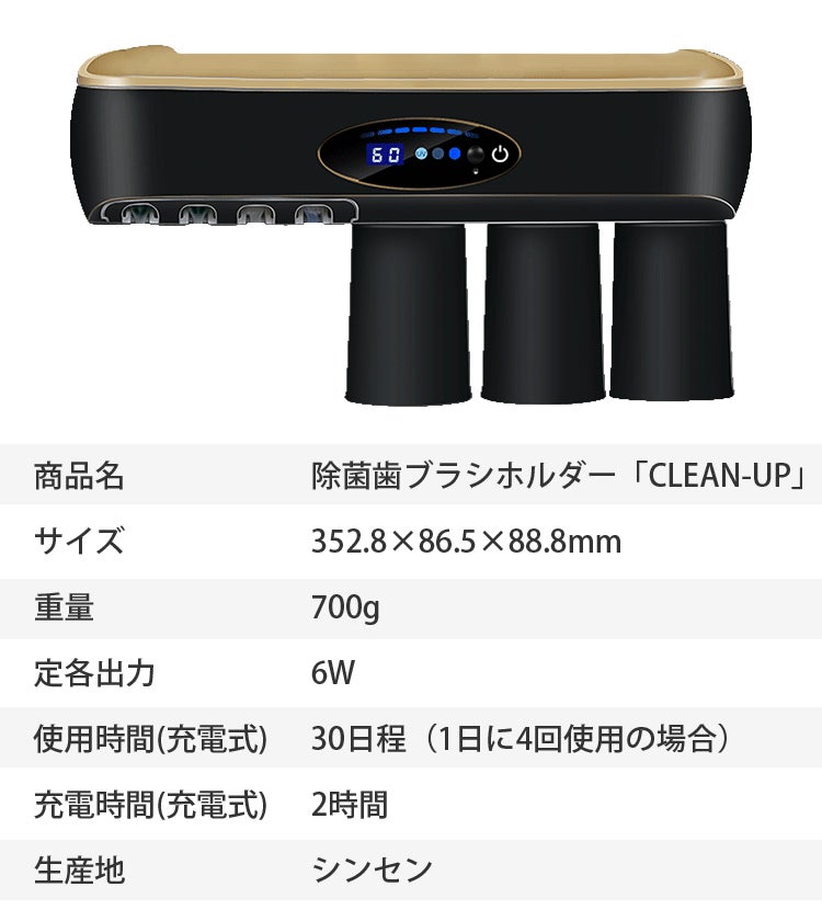 「CLEAN-UP」があれば歯ブラシをいれておくだけで除菌ができるので気持ちよくお使いいただけます。