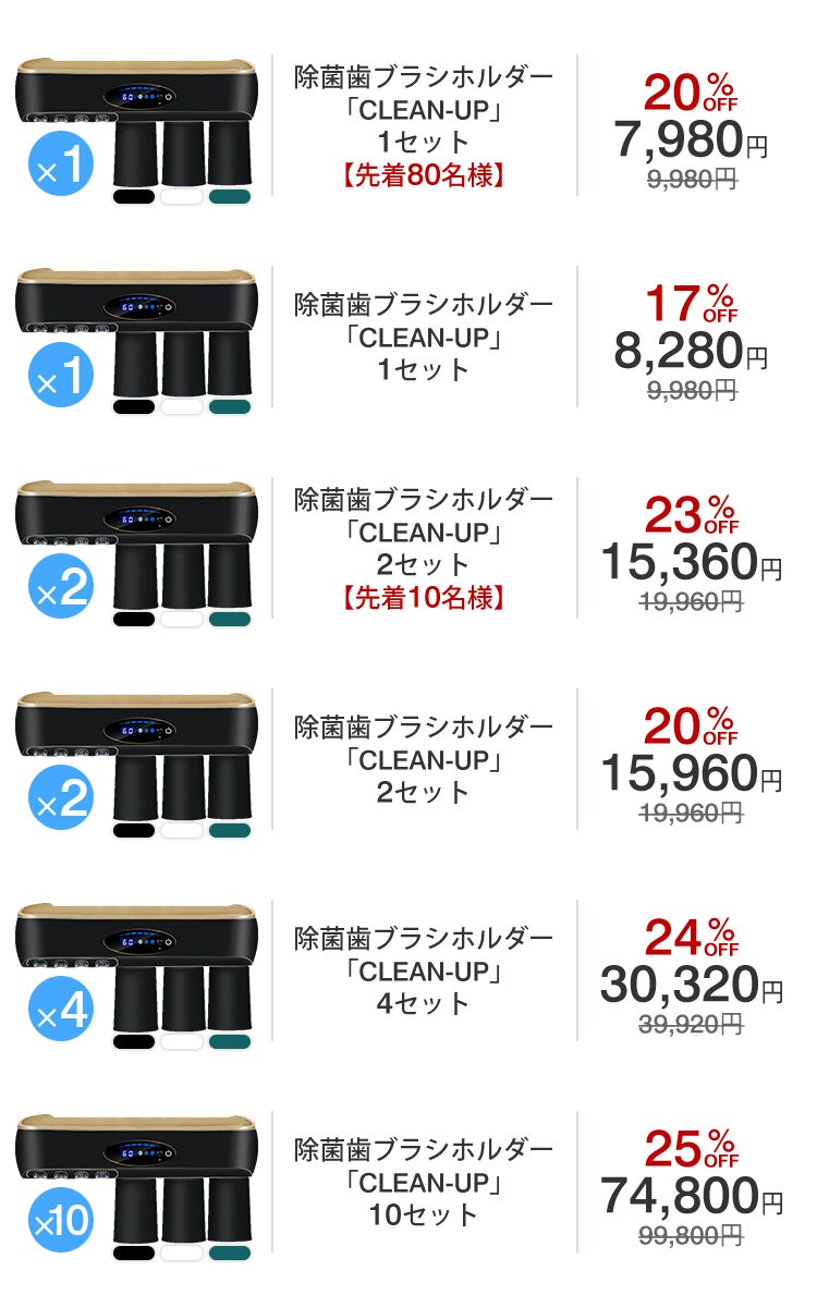 使った歯ブラシをそのままにするのではなく、「CLEAN-UP」で除菌・乾燥して細菌の数を減らすことで、毎日清潔に歯ブラシを使用していただけます。