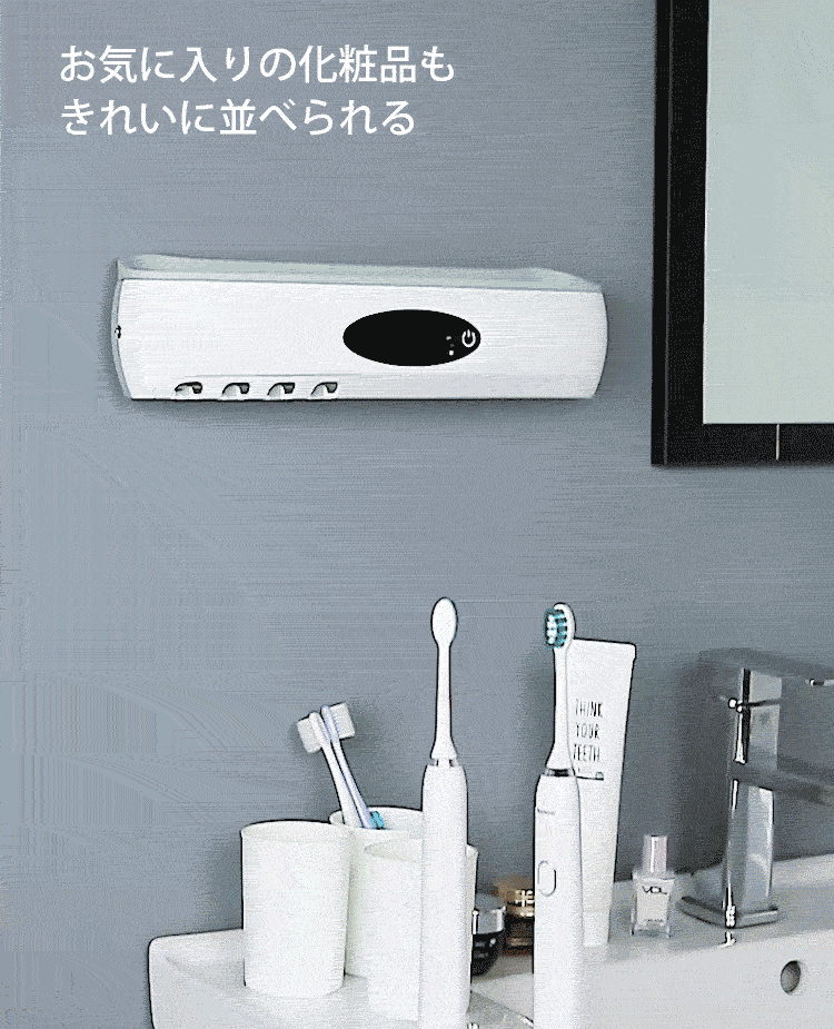 歯ブラシ4本にマグネット式コップを3個、さらにトップカバーにも物を収納することができます。