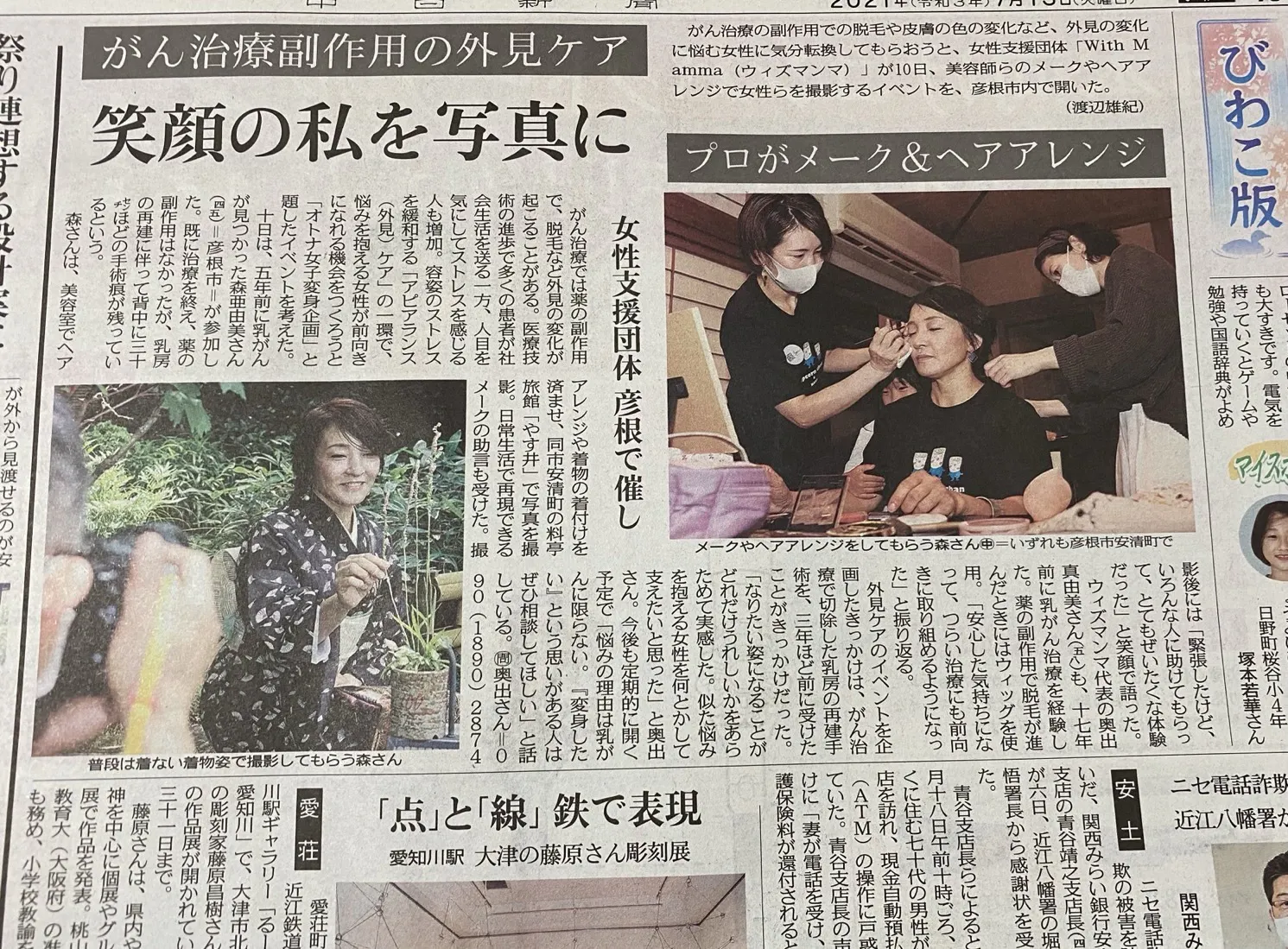 第一回目は、彦根市社会福祉協議会様や、市内の美容室BE-CHICKh日夏店様、彦根で有名な料亭旅館やす井様のご協力とボランティアスタッフのご協力を経て写真撮影会を開催させて頂きました。
