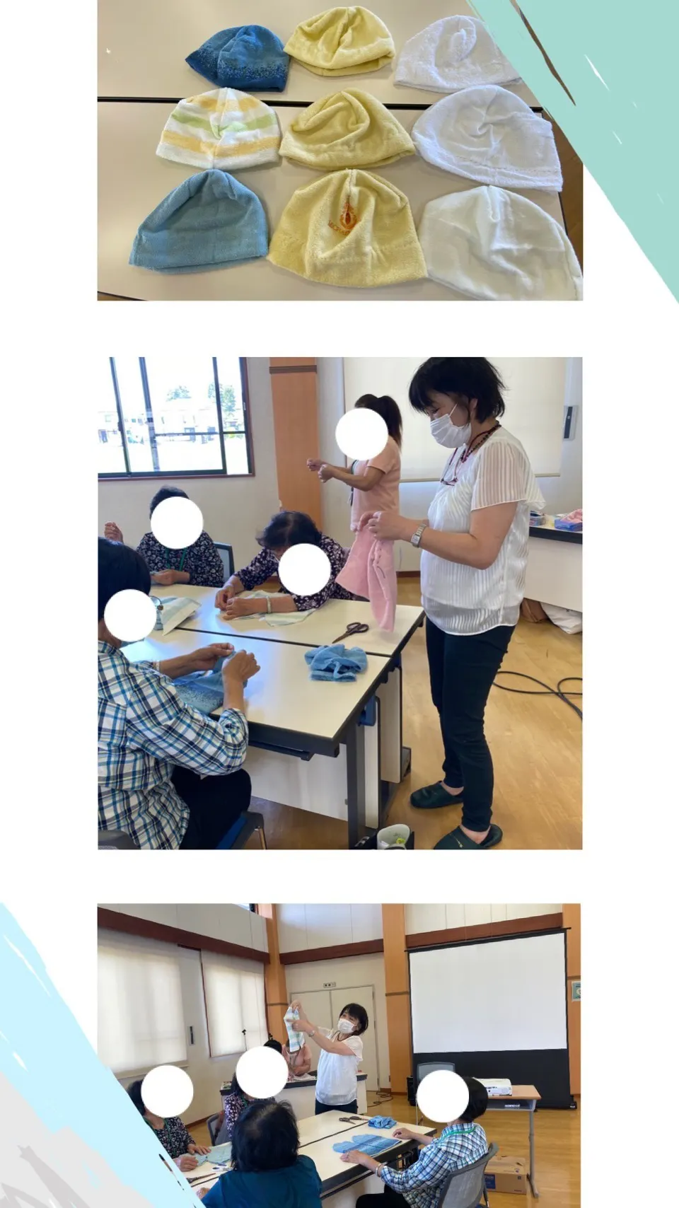 その他、高齢者さんと共に闘病中の患者さんに贈るタオルキャップの作成