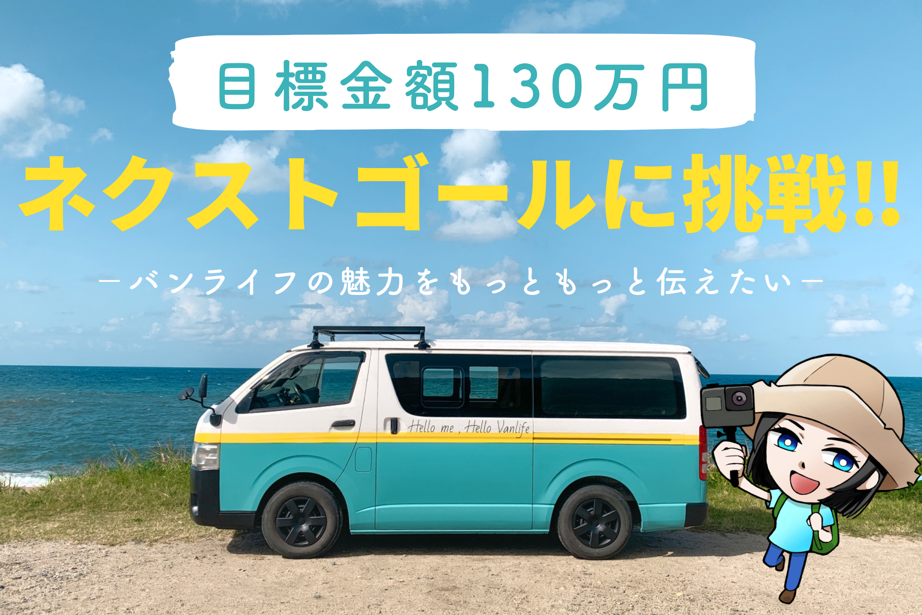 みなさんこんにちは、プロジェクト実行人のメイです!今回は、新たな挑戦があるので、そのご報告をさせていただきます。次の目標、ネクストゴールを設定いたします!!目標金額は【130万円】です!資金の使い道は、プロジェクトページの「7.資金の使途」で記載させていただいた通り、バンライフにエンターテイメント性を加えてくれる「楽しそう!」と思ってもらえるグッズです。・プロジェクター(映画鑑賞や、ゲーム、カラオケや、プレゼンなど、様々な用途に使える!)・アウトドアグッズ(テント、焚き火台、ハンモック、アウトドアテーブル&チェア、など)・カラオケセットプロジェクトの活動中、バンライフの魅力を伝える機会が沢山ありました。その中で意外だったのが、20代〜30代の方で、バンライフの魅力に共感してくれた方が意外にも沢山いらっしゃったこと。なぜならバンライフは「自分らしくいられるライフスタイル」だから。「バンライフ、本当にやってみたいかも」という言葉を沢山いただきましたし、話を聞いてくれる様子からもバンライフに対してのそのワクワクというのをすごく肌で感じることができました。そこで、もっと若い世代にバンライフという選択肢を広めていきたい!という気持ちがどんどん大きくなりました。大袈裟かもしれないけど、バンライフという選択肢を待っている人は絶対にいる、その確信を得ることができました。この情報多き複雑な時代、複雑だけど自由な時代を生きる、多くの人がこのライフスタイル共感するはずだと考えています。バンライフという選択肢に救われる人は絶対にいるはずです。自分の理想の実現のためはもちろん、バンライフという選択肢を待っている人のためにも、最後まで走り抜きます!残り約3週間、みなさんが一緒に作ってくれたこの火を消してたやすことないように、もっともっと大きくできるように、最後まで頑張ります。どうか応援の程よろしくお願いいたします!