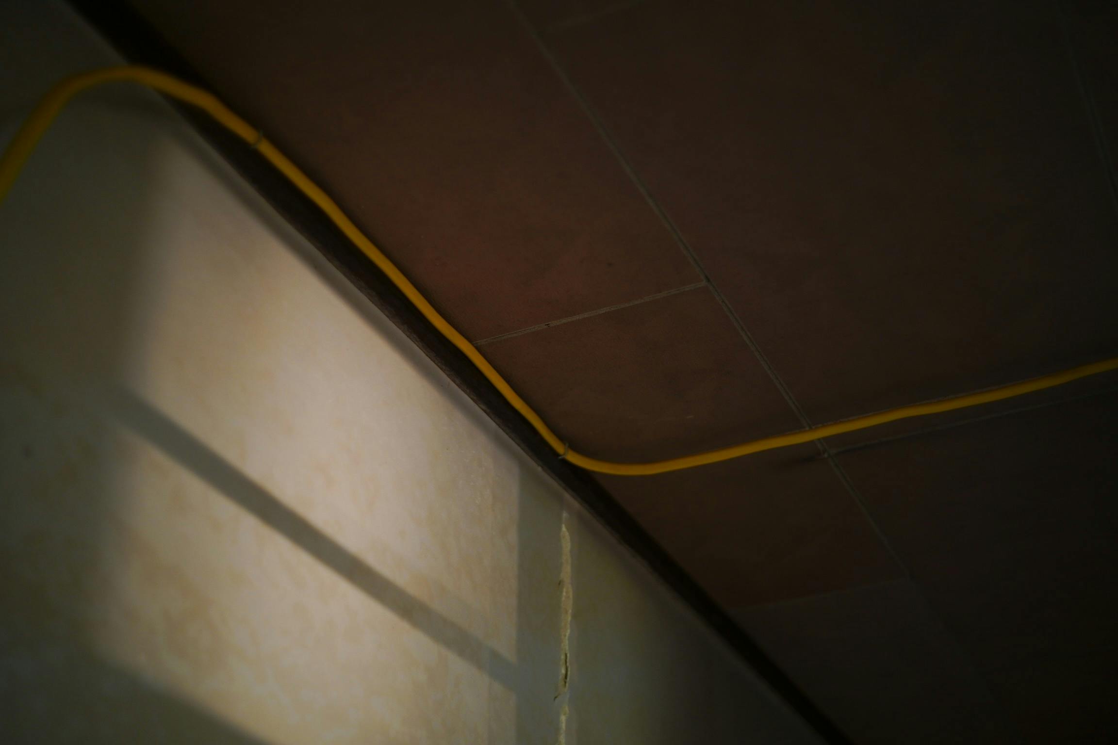 写真の黄色の線が電線です。皆さんが知っているグレーの線ではなく、黄色い線なのです。