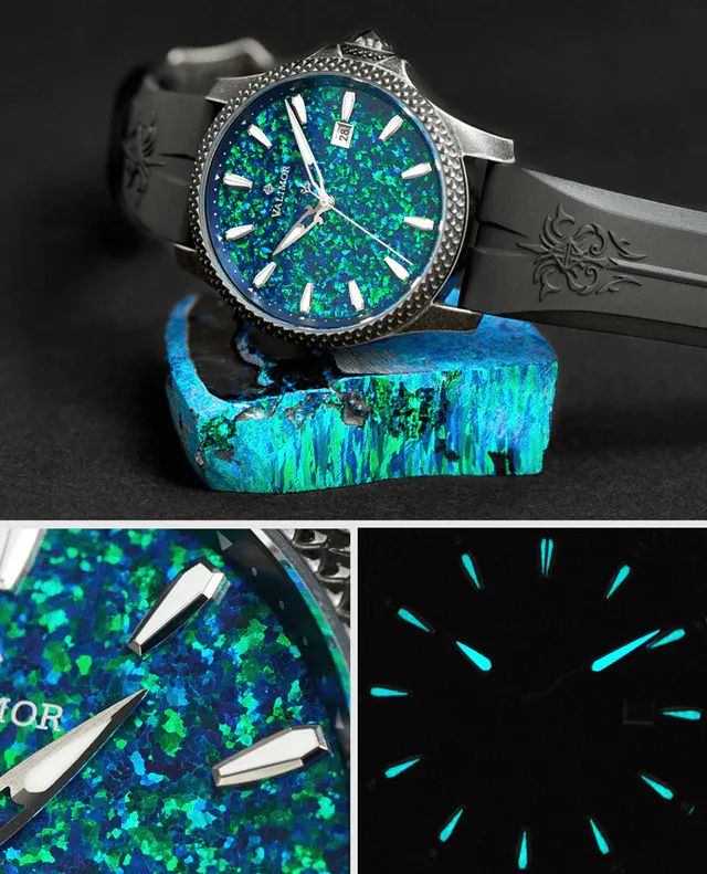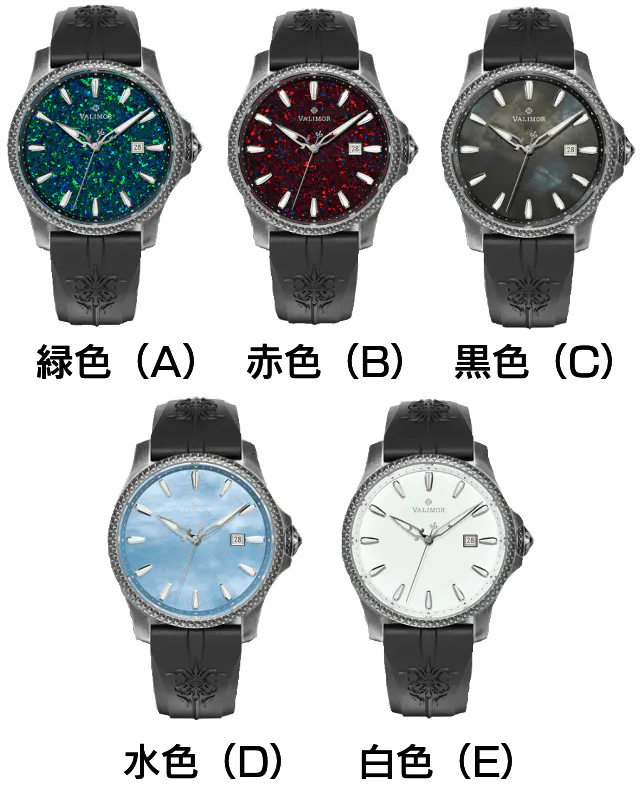 ▼文字盤:緑色(A)レイクオパール ベルト:ラバータイプ