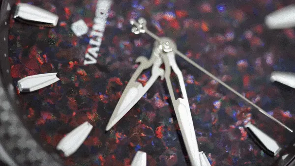 文字盤全体で統一された模様と炎は、それぞれの時計ごとで異なり世界にひとつだけの文字盤となっています。