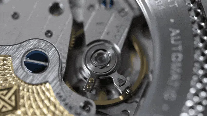 刀剣をモチーフにした針は、職人の手によって磨きを繰り返すことで、小さなパーツでありながら繊細で控え目な美学を物語っています。