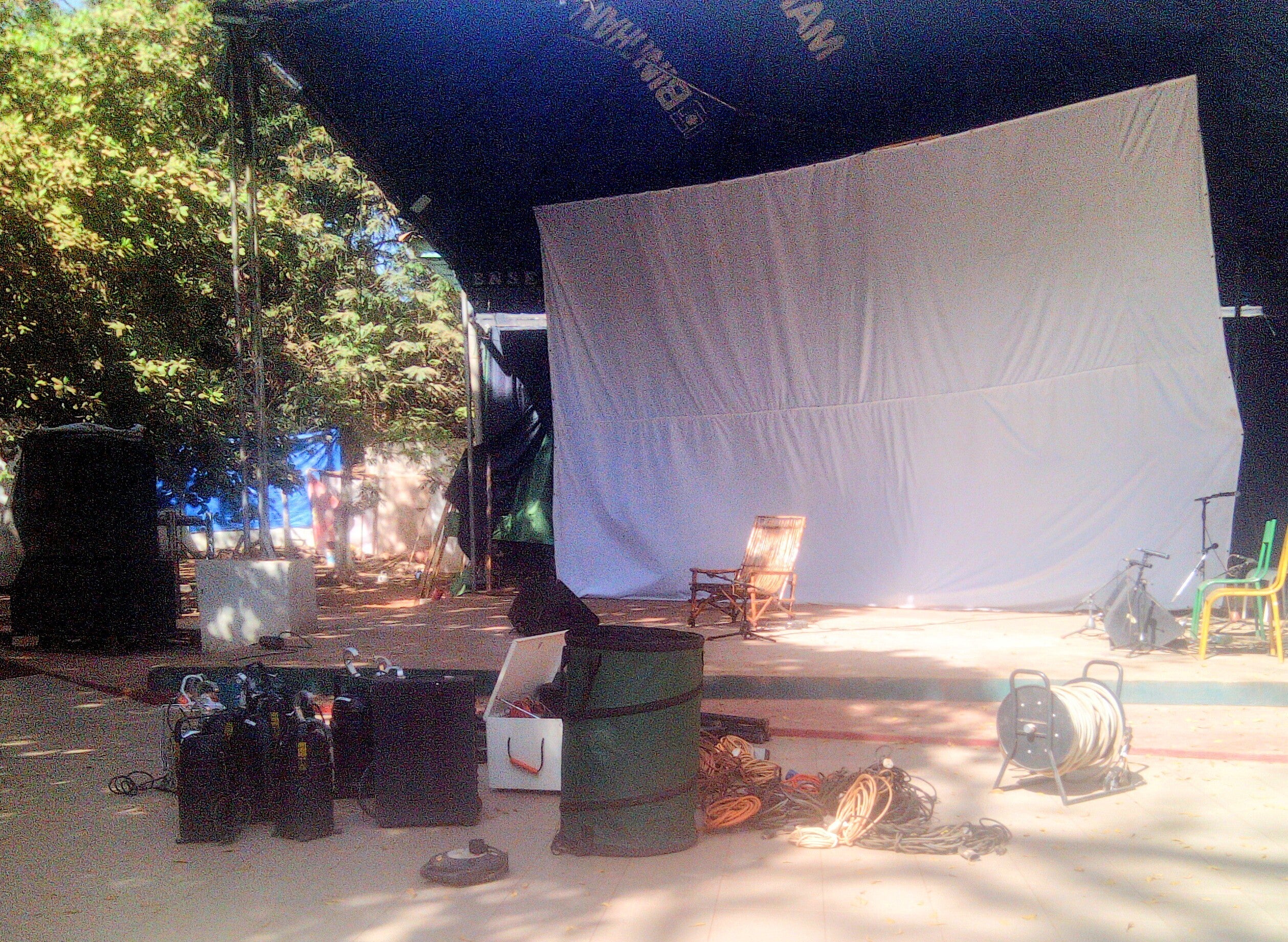 会場の設備が非常に良くなかったことから、ドイツから来てくれたトーンマイスター(音楽録音と、そのプロデュースの国家資格です)のお二人には大変な苦労をかけてしまいました。会場の設備が良くないということは事前から様々の情報で察知しており、ワガドゥーグーにスタジオを持っているサウンドエンジニアから大量の機材をお借りし、マイ·リンガニさんの車にすし詰めに積み込み、後部座席で楽器と機材に挟まれ、身動きもできないような状態でボボまで行きました。しかし、そのことが会場経営者のお気に召さなかったらしく、最初から謝罪させられる羽目に…。そんなに機材を借りてきたりするのは、年間百近いコンサートを開催している会場に対して信頼と尊敬の念がない証拠だというのです。ですが、結局はこれらの機材があったためになんとか凌ぐことができたのです。その上、会場は漏電している様子でトーンマイスターたちはあれやこれやに触るたびに電気がビリビリと身体に伝わり、大変だったそうですが、私を心配させまいと、ワガドゥーグーに帰り着くまではそのことを口にしませんでした。そのせいかどうか定かではありませんが、彼らのパソコンの一台のハードディスクに問題が起きて、ベルリンで修理しないとせっかく録音したデータが取り出せません。書き出すとキリがありませんが、会場のスピーカーからミキサーまで、ひとつとしてちゃんと機能しているものがなかったため、問題箇所の追求、修理·調整に膨大な時間がかかり、リハーサルも思うように進められず、一時はどうなることかと心配しました。
