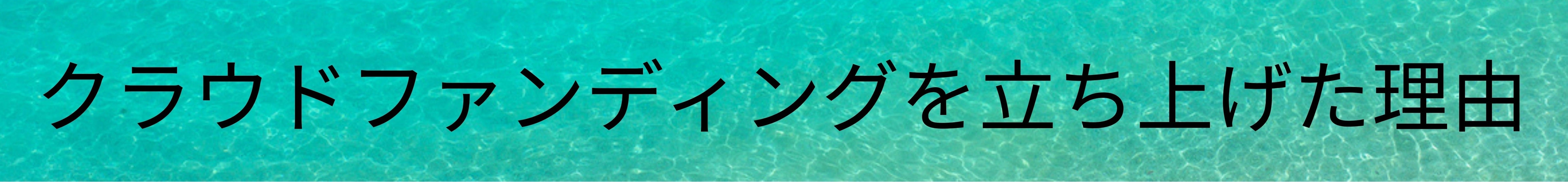 その思いが、このクラウドファンディングを立ち上げた理由の一つです。
