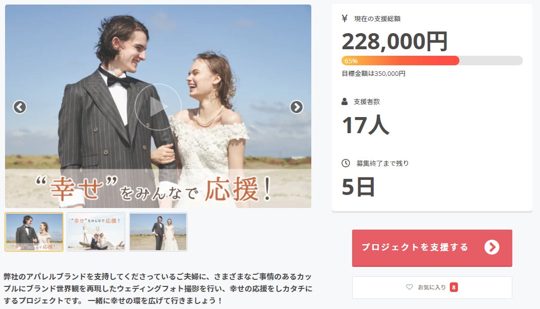 残り5日間と半日となり現在17人の方から22万8千円の支援を頂き進行いたしております。