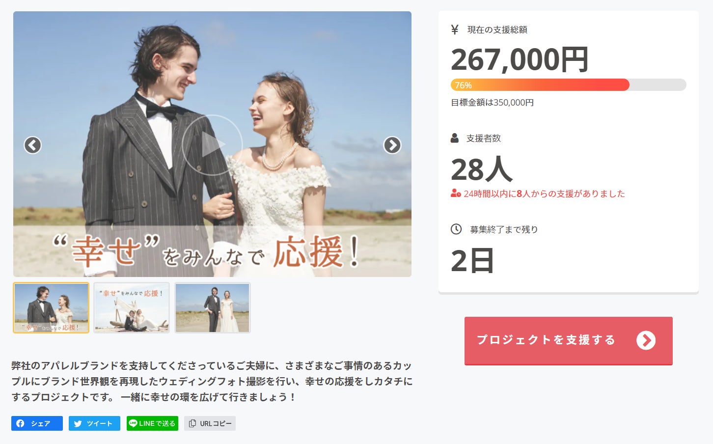 現在28名のご支援を頂き、26万7千円のご支援を頂き進行いたしております。