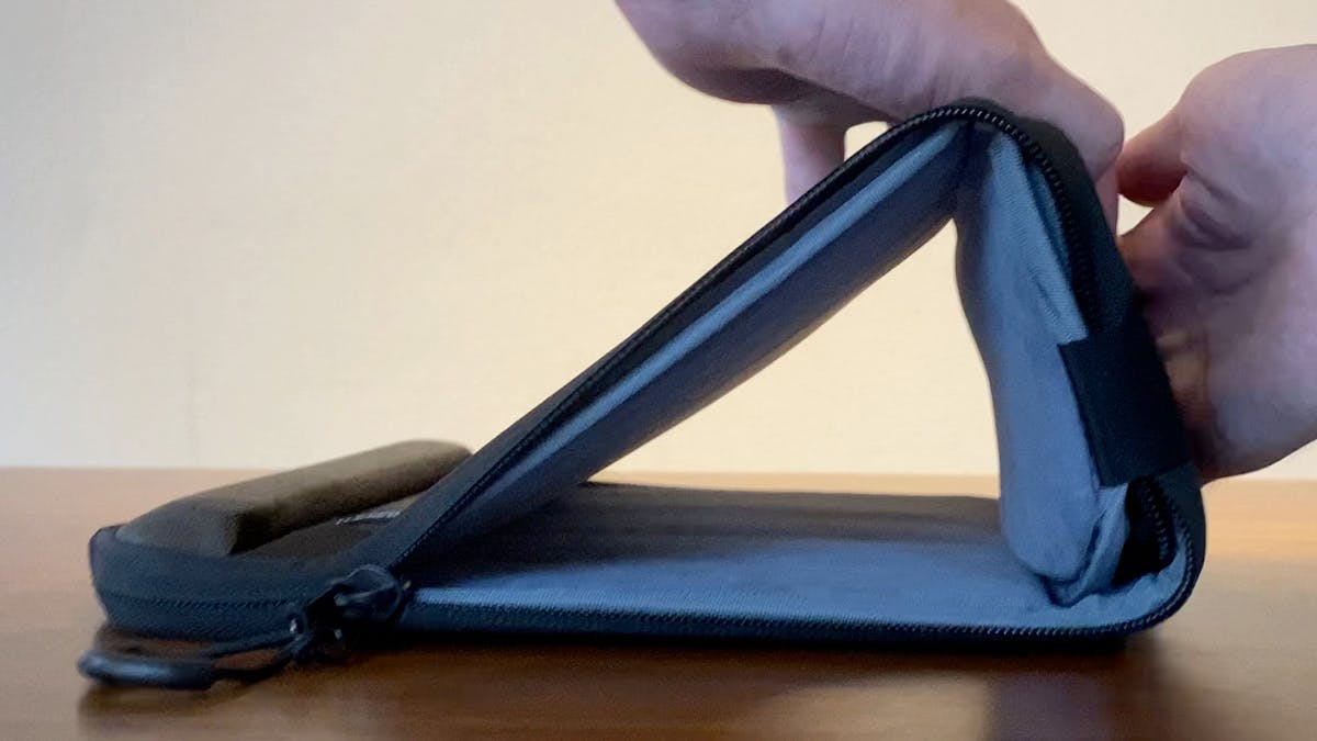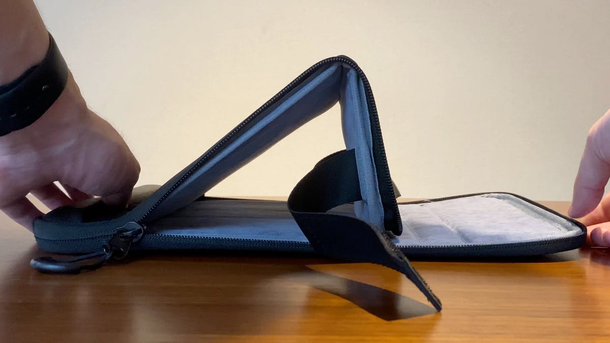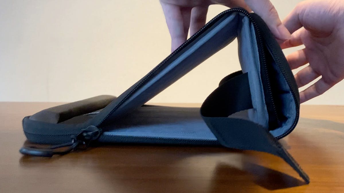 クラッチバッグ風に持てる「ピークラッチ」は、ノートパソコンのスタンド機能も付いたPCバッグです。