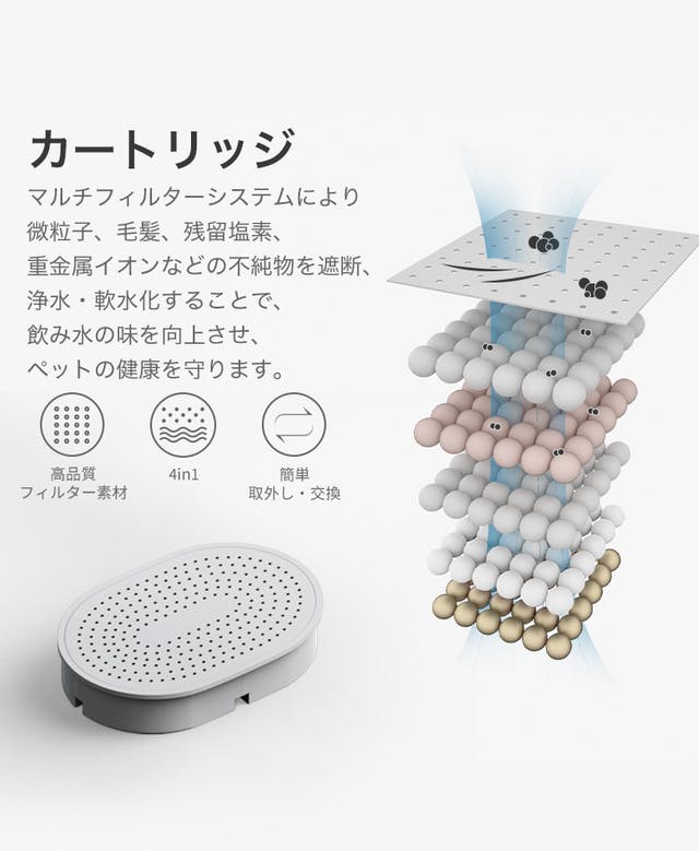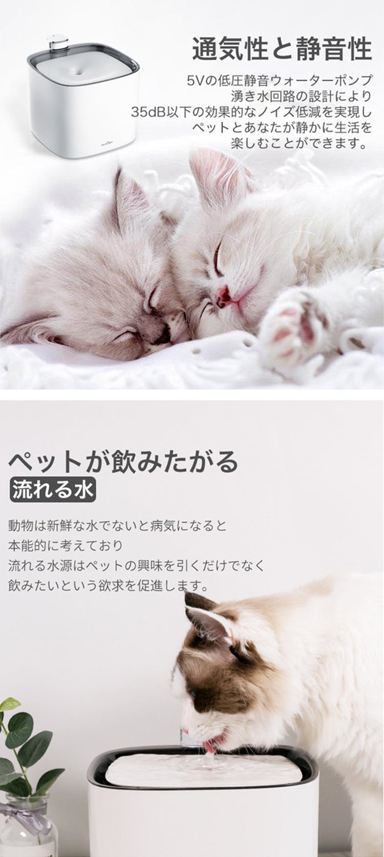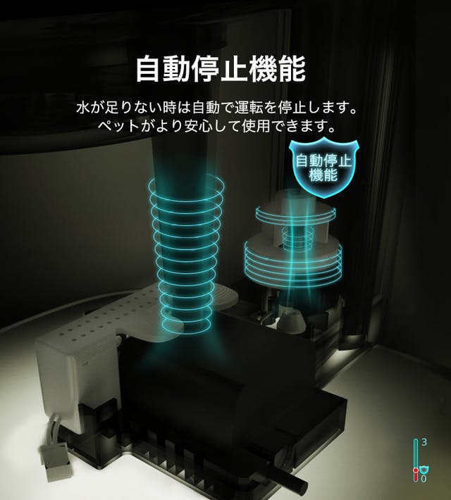 256nmのUVC(紫外線)ライトと4in1フィルターで不純物を念入りにろ過。UVCライトはタンクの内側に設置されており、あなたの大切なペットに直接ライトが当たる心配がありません。