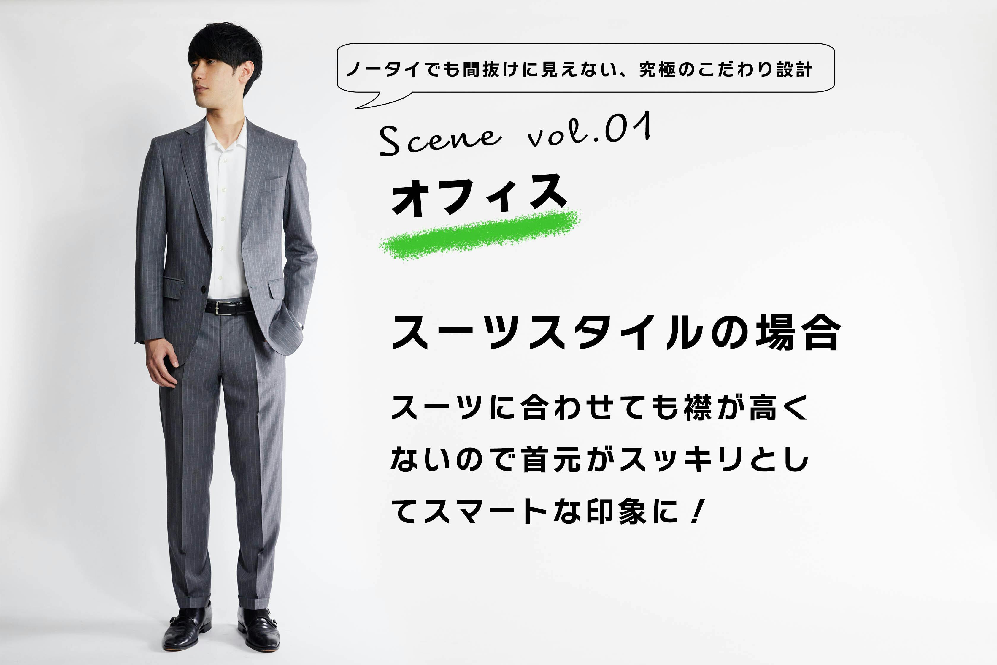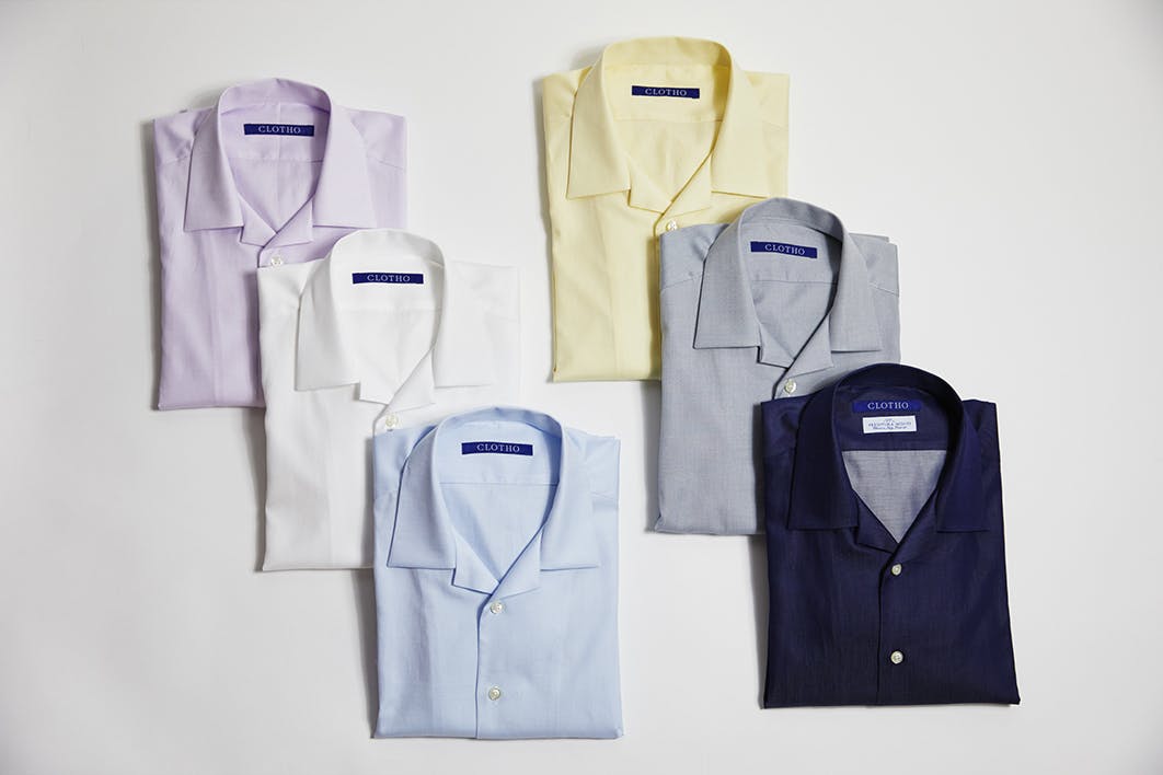 ビジネスで着用できるように徹底的に襟の形とシルエットにこだわり開発した開襟。