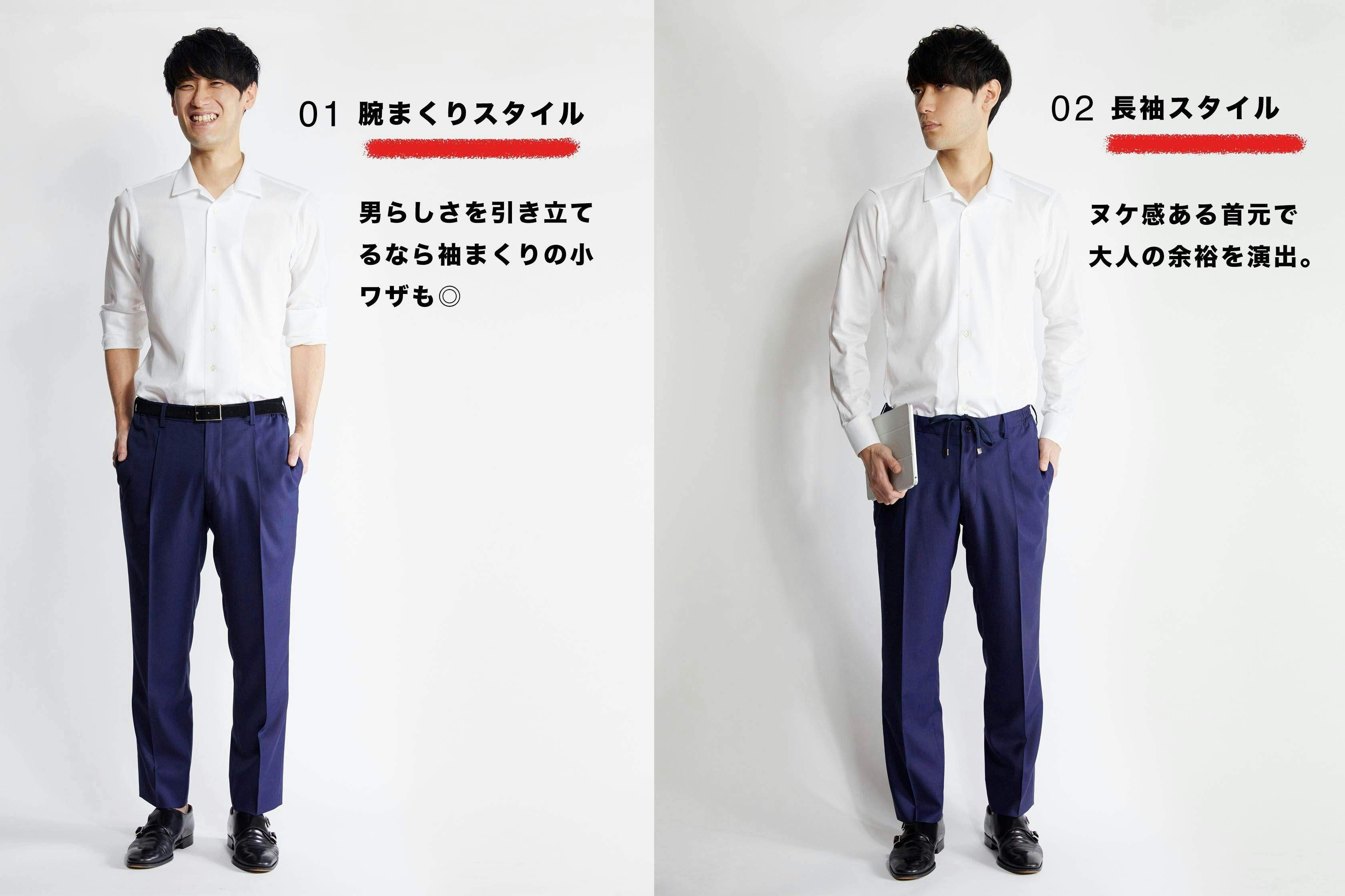 クールビズには腕まくりスタイルもおまかせ。