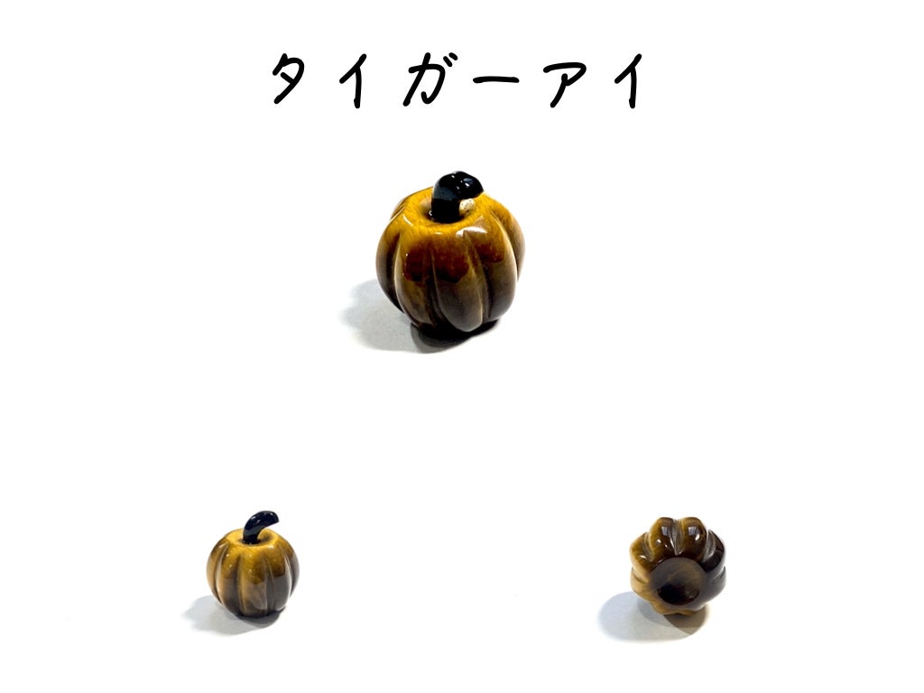 こちらのカボチャの宝石は「タイガーアイ」の上に「オニキス」を接着して