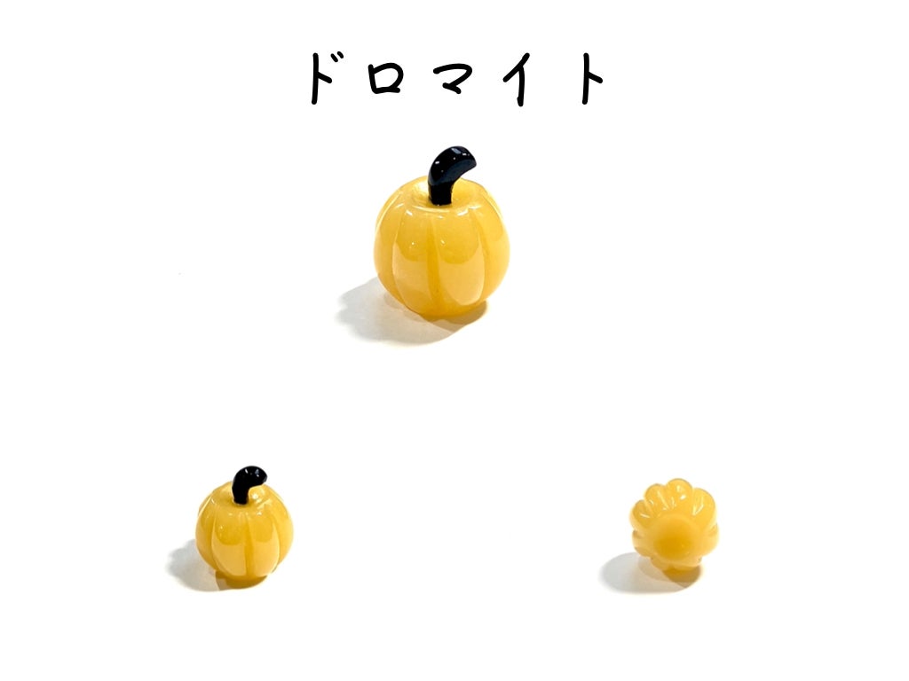 こちらのカボチャの宝石は「ドロマイト」の上に「オニキス」を接着したものと
