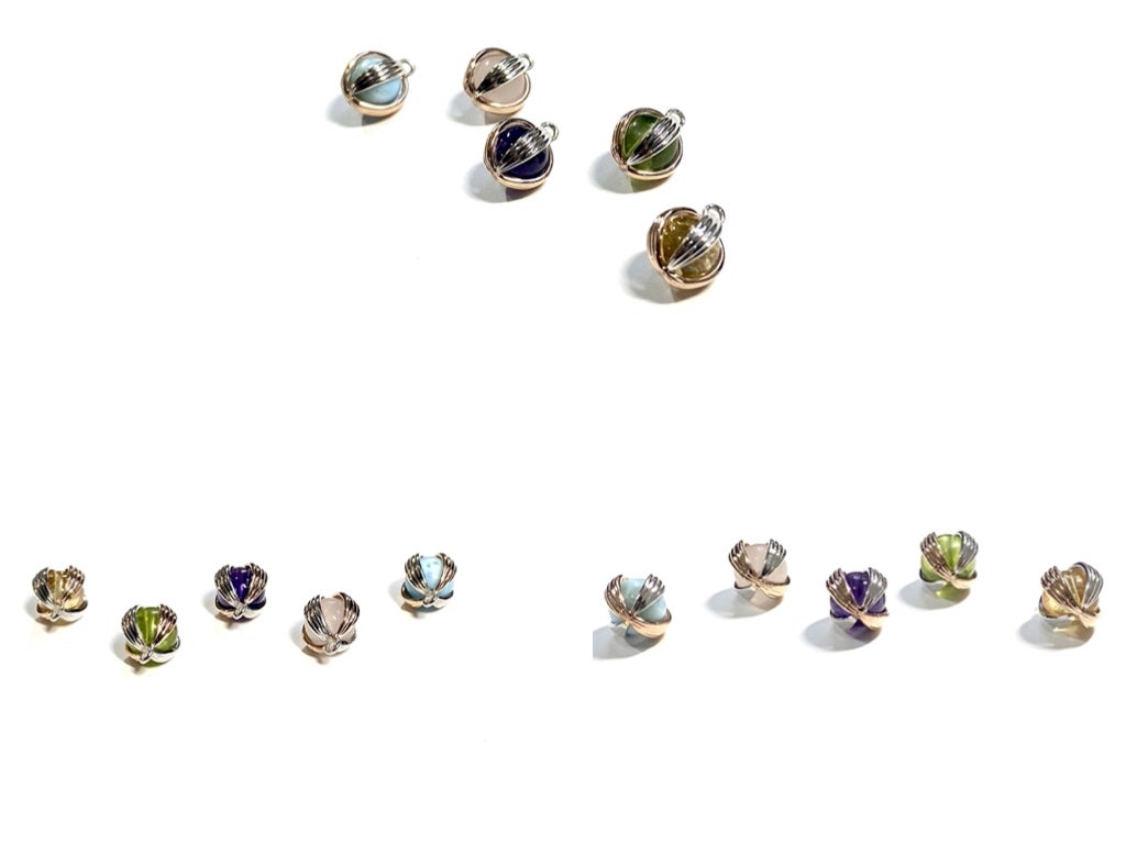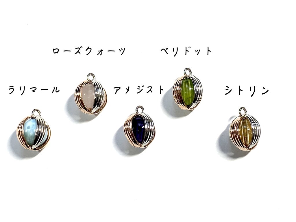 「アメジスト」「シトリン」「ラリマール」「ペリドット」「ローズクォーツ」の5種類。